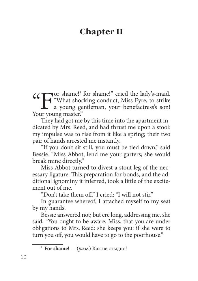 История страданий и обретения счастья бедной сиротки Джен Эйр, описанная замечательной английской писательницей Шарлоттой Бронте (1816–1855), известна всем. С невзгодами и лишениями героине романа помогли справиться сила духа, цельность характера, бескомпромиссность, смирение и бесконечное терпение. Добродетельность, чистая душа, верность и вера творят настоящие чудеса.В книге приводится неадаптированный текст на языке оригинала с незначительными сокращениями, снабженный комментариями и словарем.