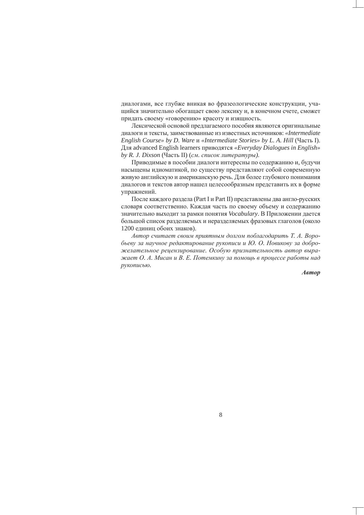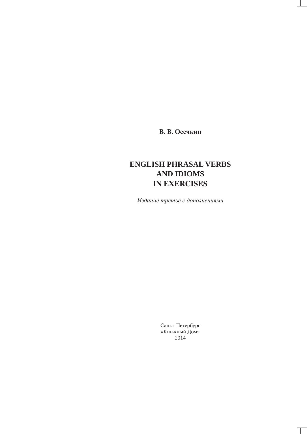 Оригинальные тексты и диалоги представлены автором данного пособия в виде упражнений на фразовые глаголы, идиомы и различные полезные словосочетания. Пособие предназначено для учащихся старших классов школ с углубленным изучением английского языка. Пособие может оказаться полезным для студентов младших курсов филологических факультетов, обучающихся по специальности «английская филология»,а также представляет интерес для всех желающих совершенствоваться в изучении английского языка. В приложении приводится большой список разделяемых и неразделяемых фразовых глаголов (около 1200 единиц обоих знаков).