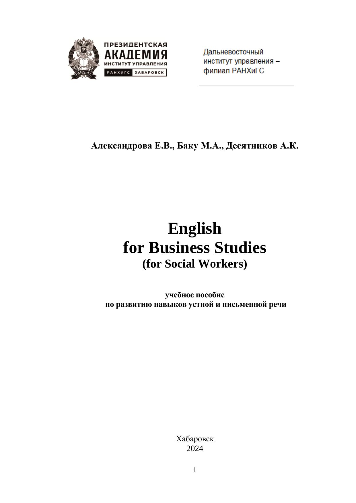 English for Business Studies (for Social Workers)