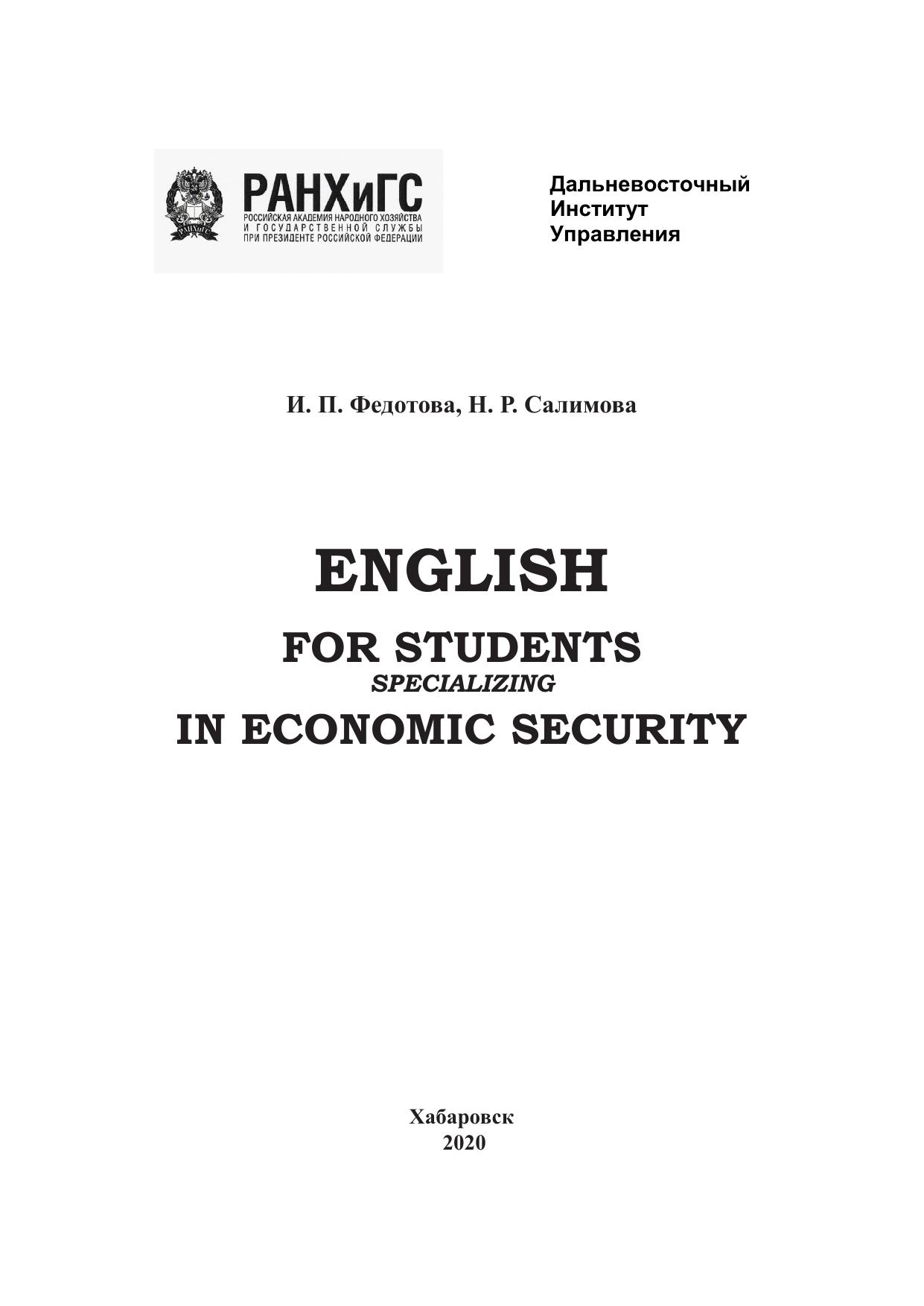 English for Students Specializing in Economic Security