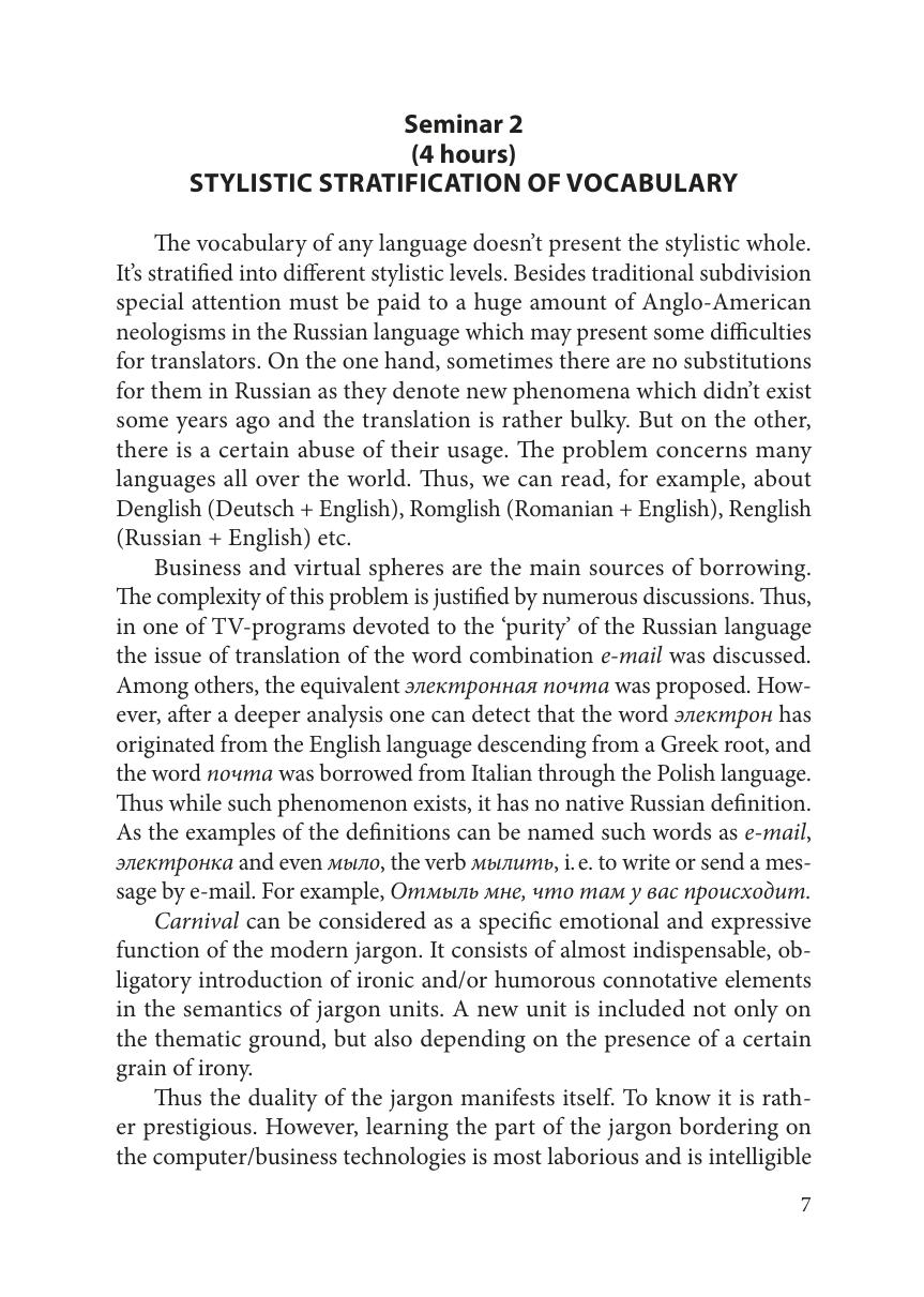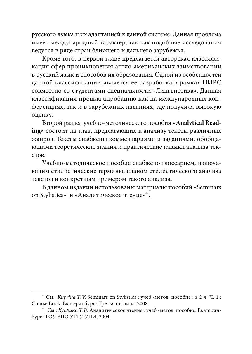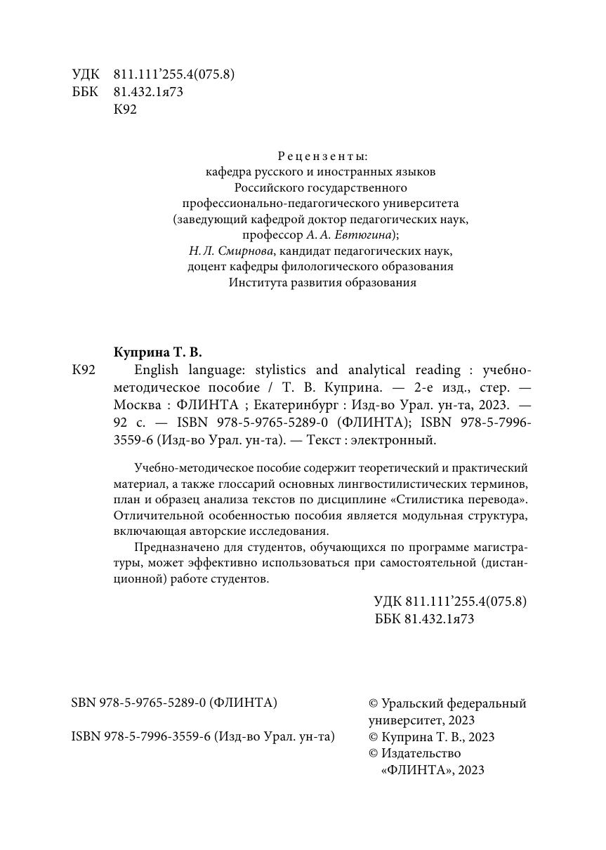 Учебно-методическое пособие содержит теоретический и практический материал, а также глоссарий основных лингвостилистических терминов, план и образец анализа текстов по дисциплине «Стилистика перевода». Отличительной особенностью пособия является модульная структура, включающая авторские исследования.