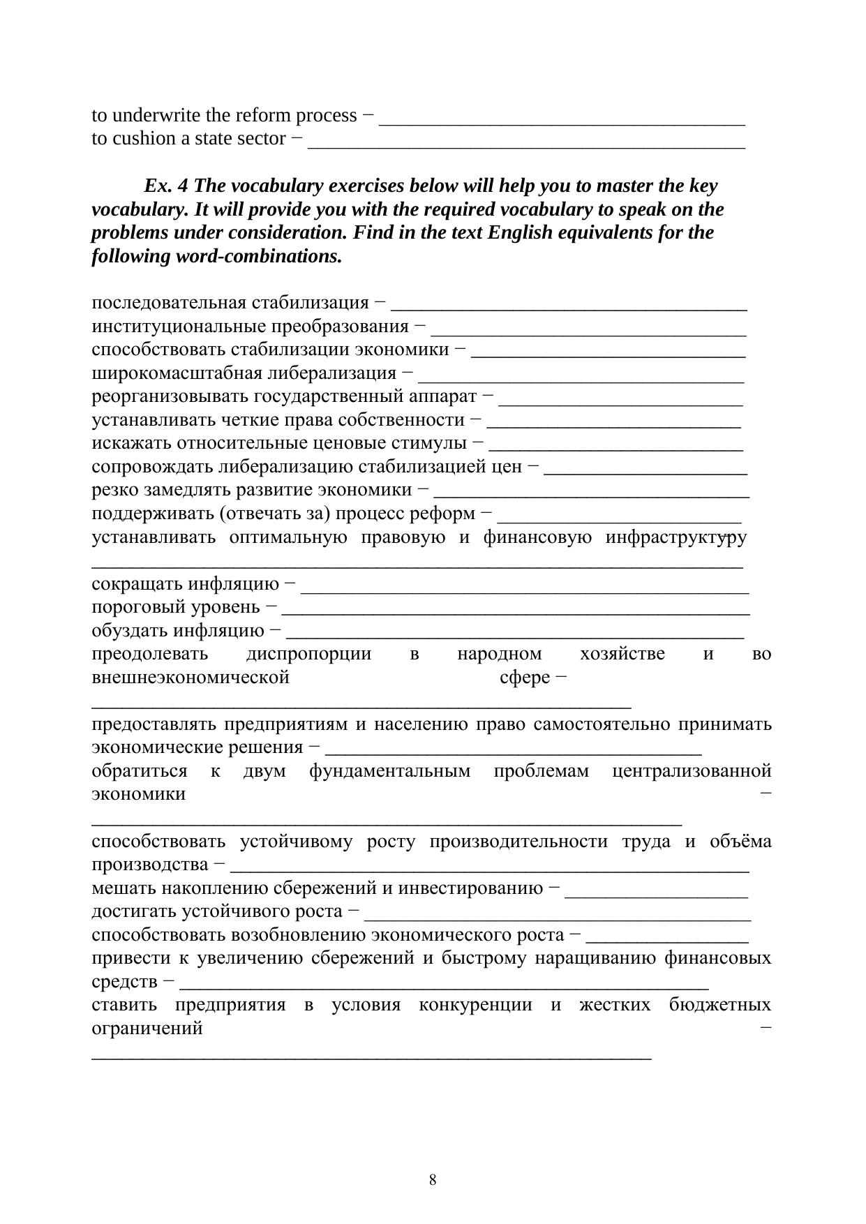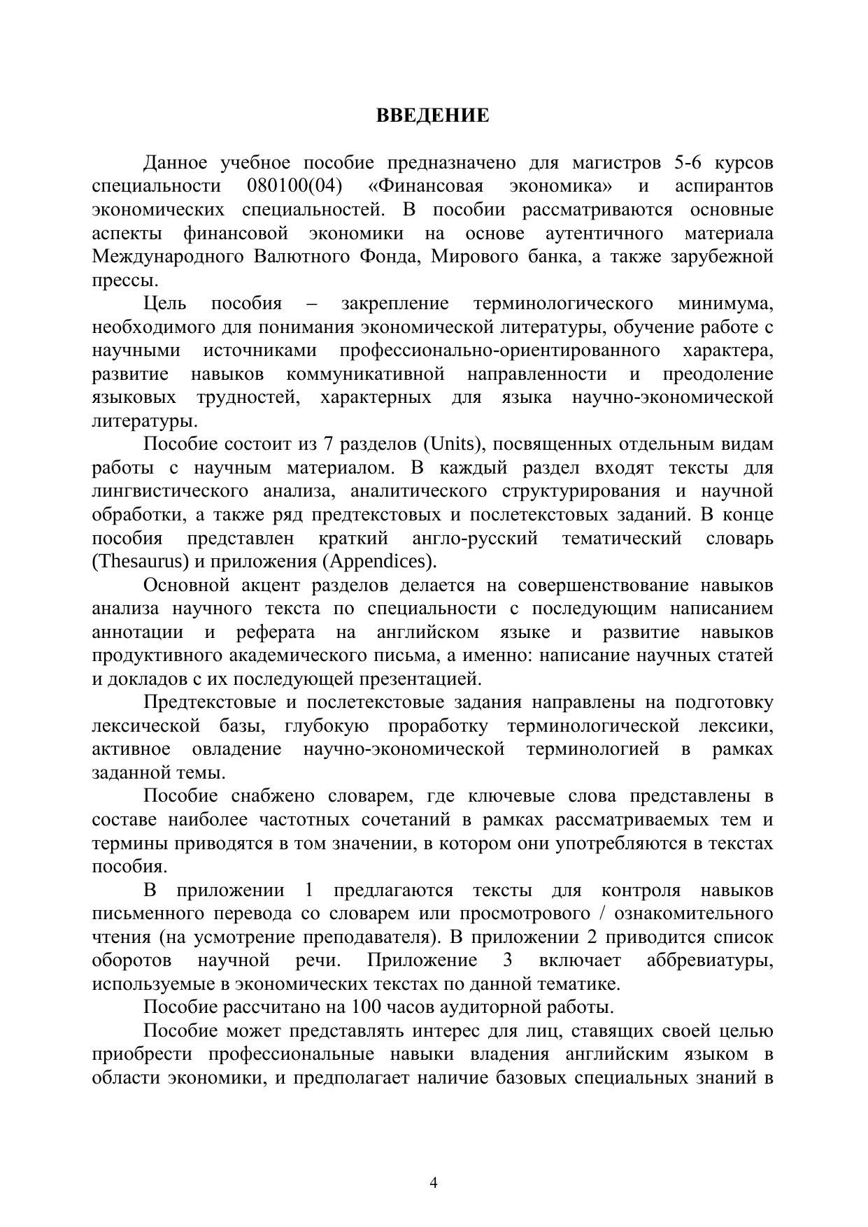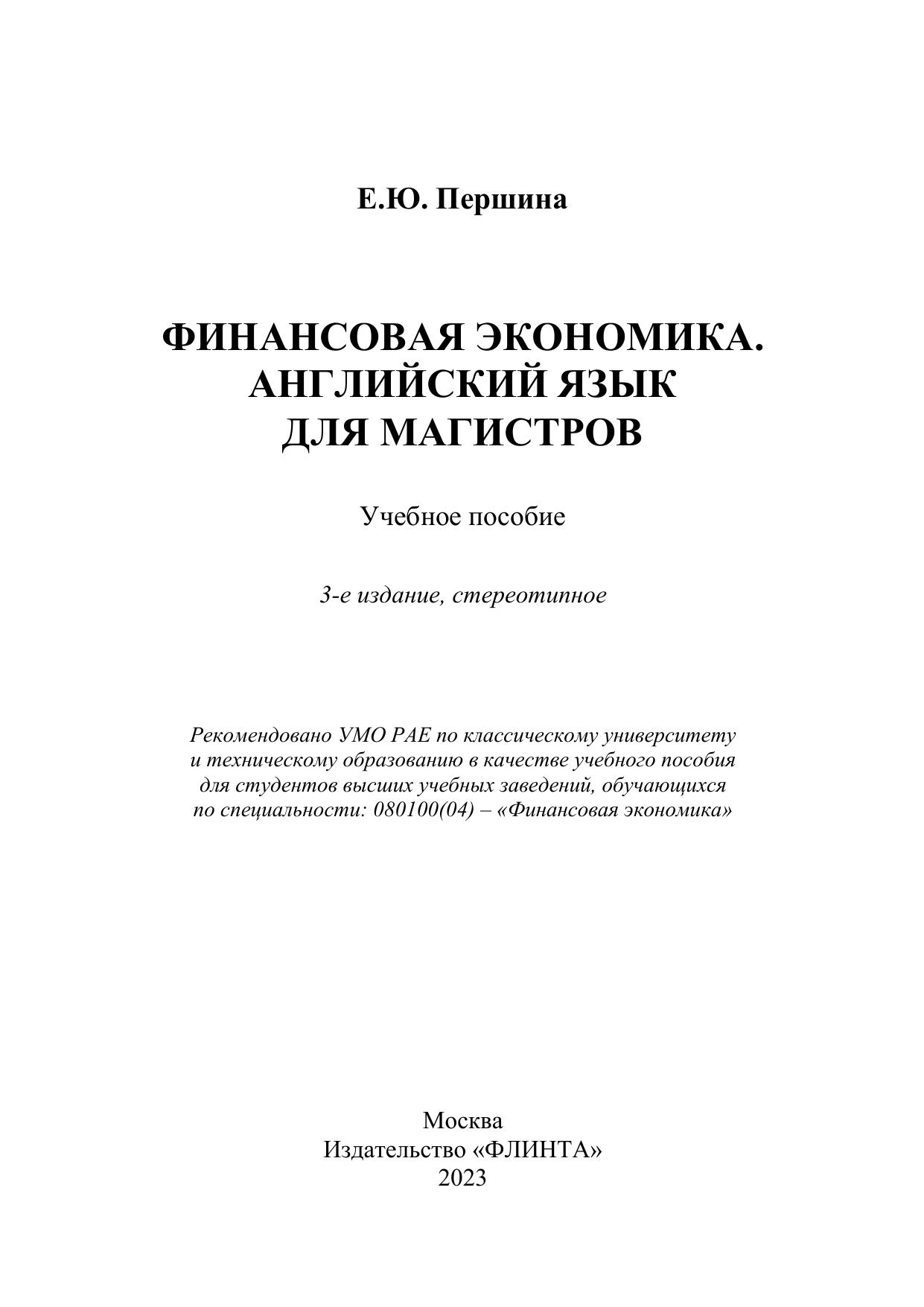 В пособии рассматриваются основные аспекты финансовой экономики на основе аутентичного материала Международного Валютного Фонда, Мирового банка, а также зарубежной прессы. Цель пособия – закрепление терминологического минимума, необходимого для понимания экономической литературы, обучение работе с научными источниками профессионально-ориентированного характера, развитие навыков коммуникативной направленности и преодоление языковых трудностей, характерных для языка научно-экономической литературы. Рассчитано на 100 часов аудиторных занятий.