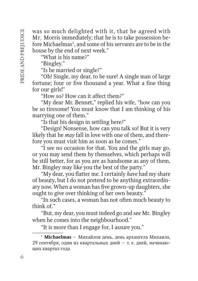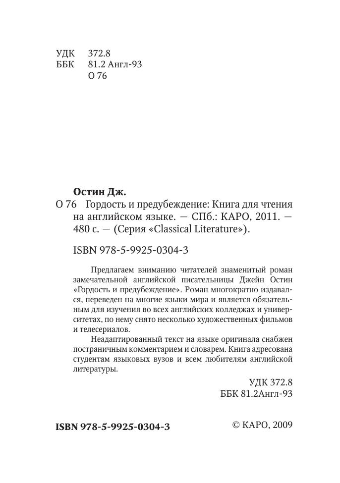 Предлагаем вниманию читателей знаменитый роман замечательной английской писательницы Джейн Остин «Гордость и предубеждение». Роман многократно издавался, переведен на многие языки мира и является обязательным для изучения во всех английских колледжах и университетах, по нему снято несколько художественных фильмов и телесериалов.Неадаптированный текст на языке оригинала снабжен постраничным комментарием и словарем. Книга адресована студентам языковых вузов и всем любителям английской литературы.