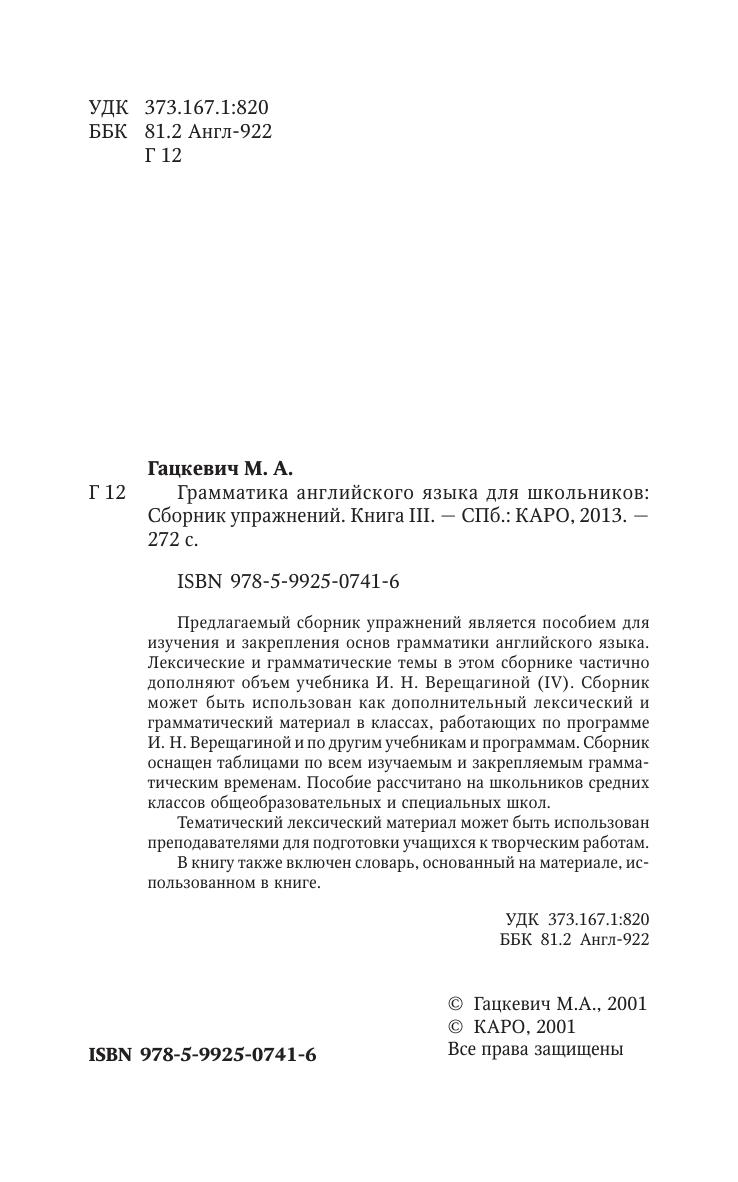 Грамматика английского языка для школьников: Сборник упражнений. Книга III