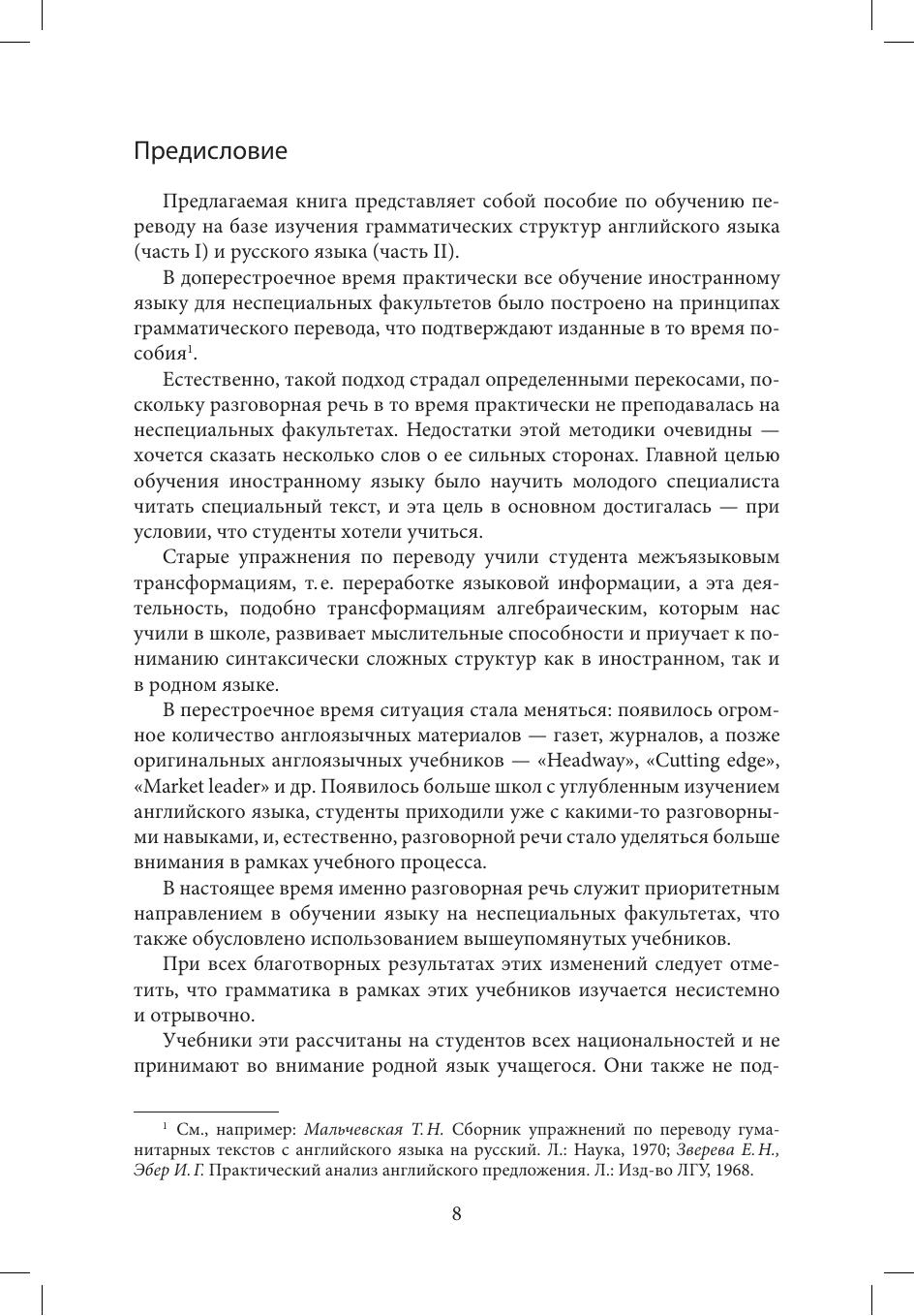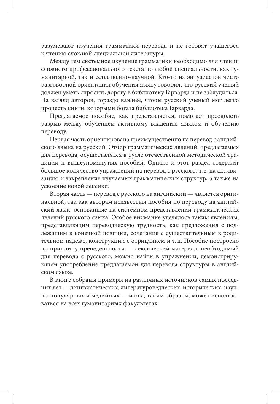Пособие представляет собой сборник упражнений по переводу с английского языка на русский и с русского на английский и включает объяснение основных грамматических трудностей как в английских, так и в русских текстах, встречающихся при переводе. Упражнения содержат аутентичные примеры, взятые из научных, научно-популярных и общественно-политических текстов.