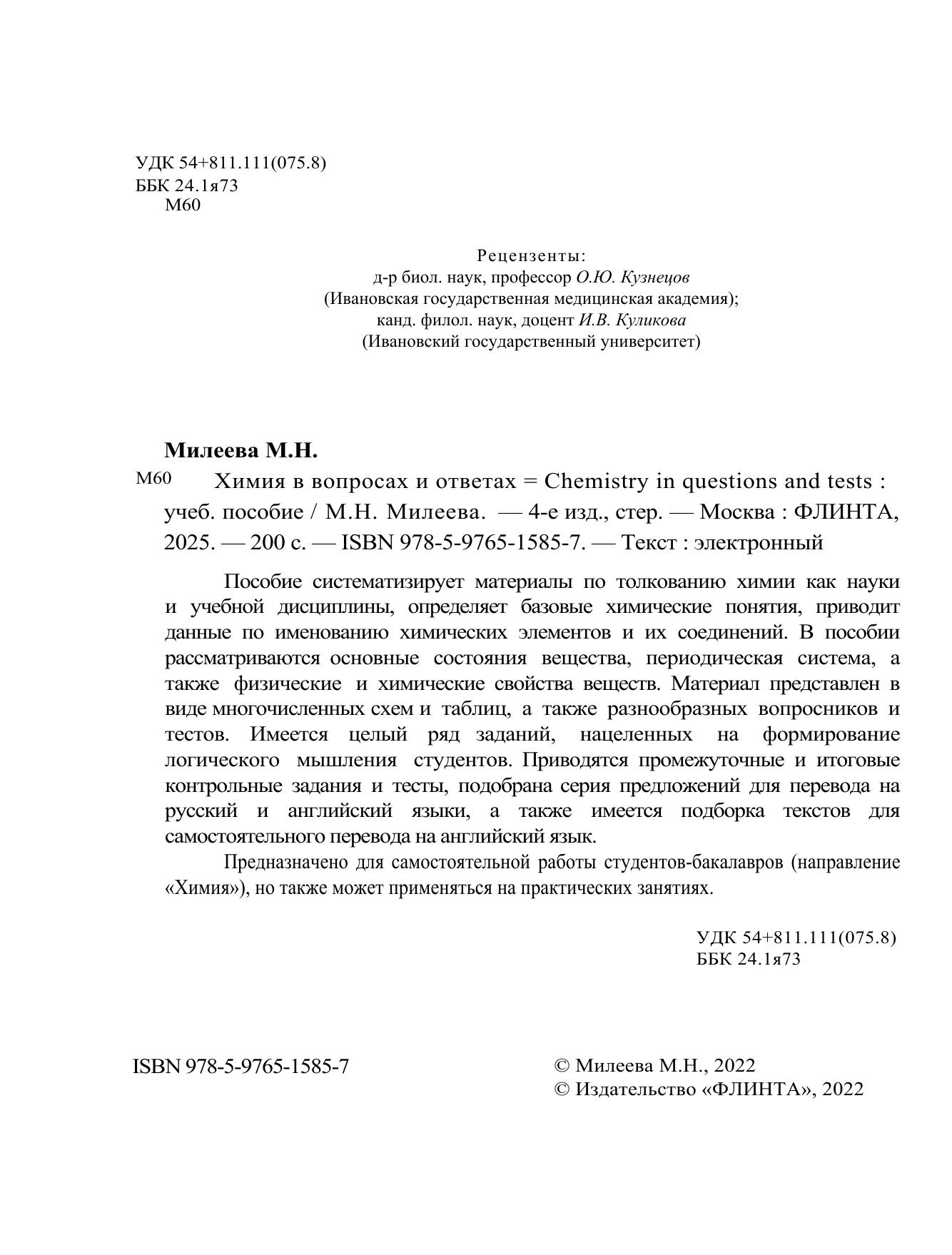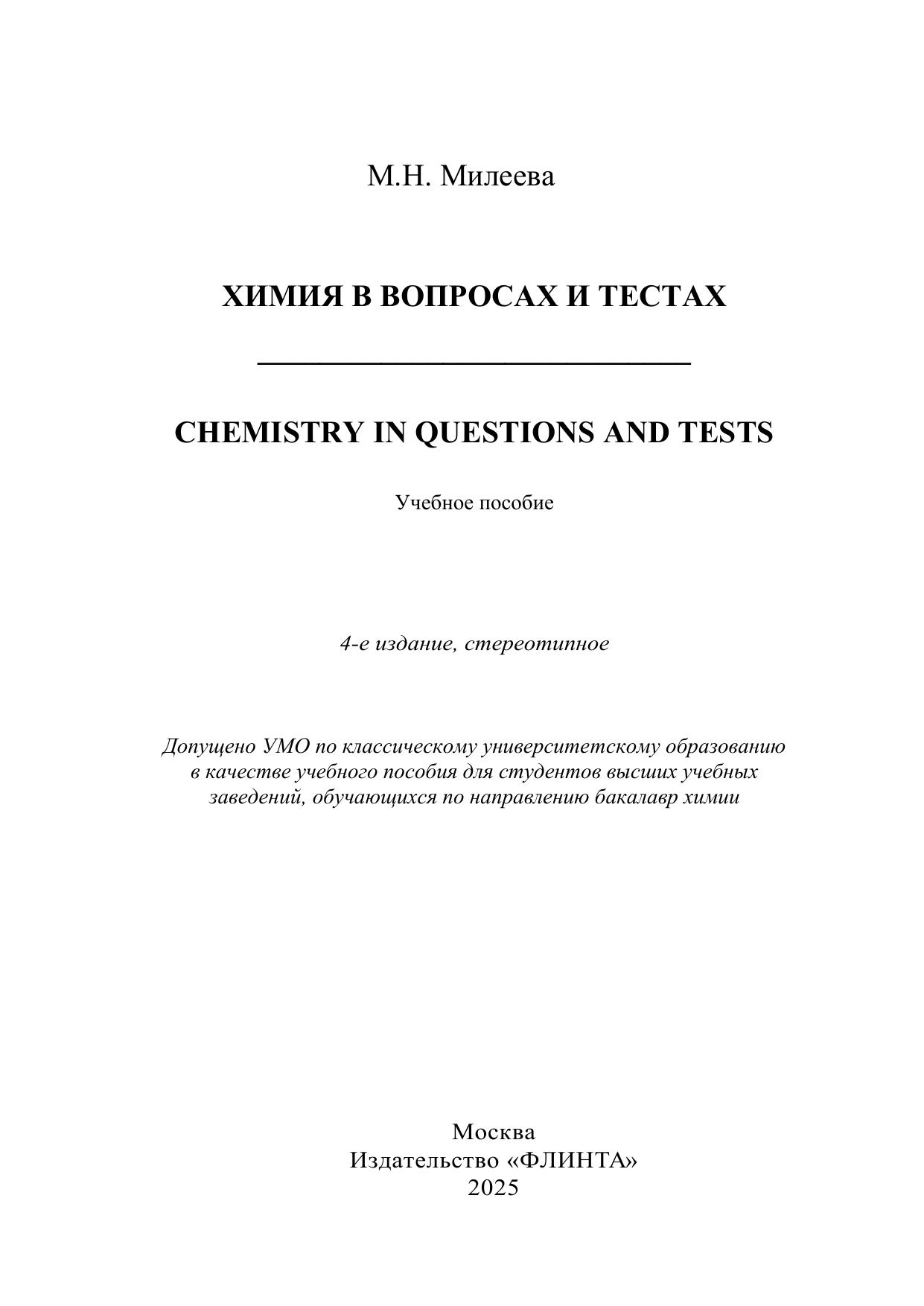 Химия в вопросах и тестах = Chemistry in questions and tests