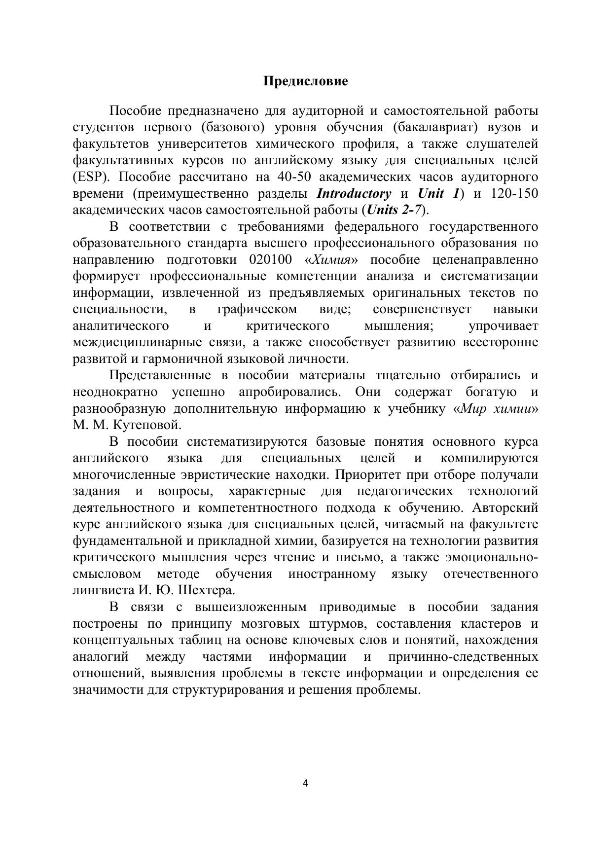Пособие систематизирует материалы по толкованию химии как науки и учебной дисциплины, определяет базовые химические понятия, приводит данные по именованию химических элементов и их соединений. В пособии рассматриваются основные состояния вещества, периодическая система, а также физические и химические свойства веществ. Материал представлен в виде многочисленных схем и таблиц, а также разнообразных вопросников и тестов. Имеется целый ряд заданий, нацеленных на формирование логического мышления студентов. Приводятся промежуточные и итоговые контрольные задания и тесты, подобрана серия предложений для перевода на русский и английский языки, а также имеется подборка текстов для самостоятельного перевода на английский язык. Предназначено для самостоятельной работы студентов-бакалавров (направление«Химия»), но также может применяться на практических занятиях.