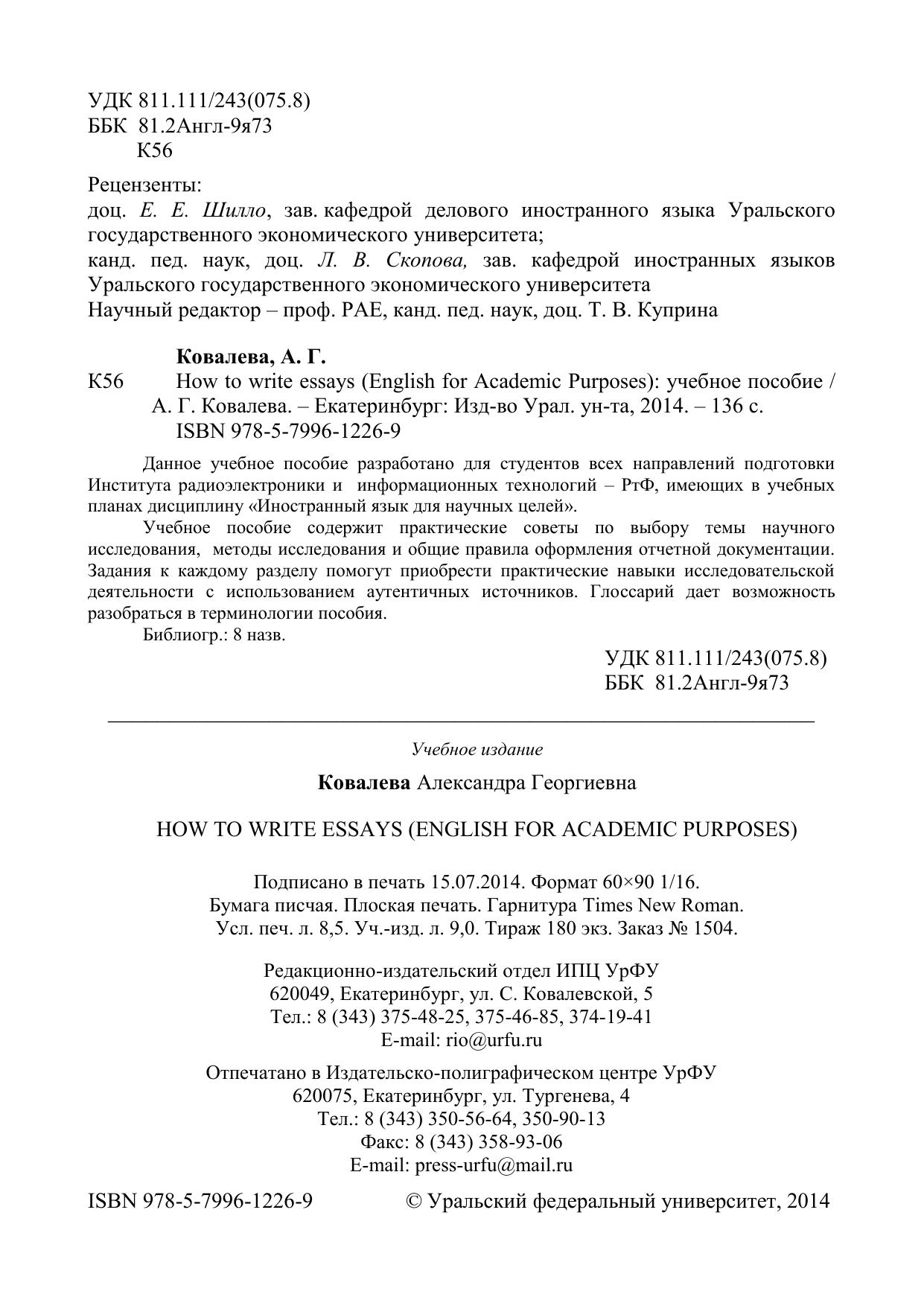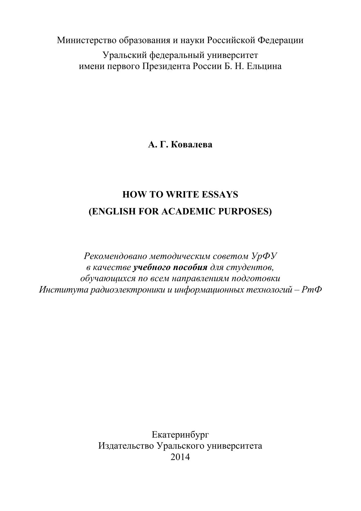How to write essays (English for Academic Purposes): учебное пособие