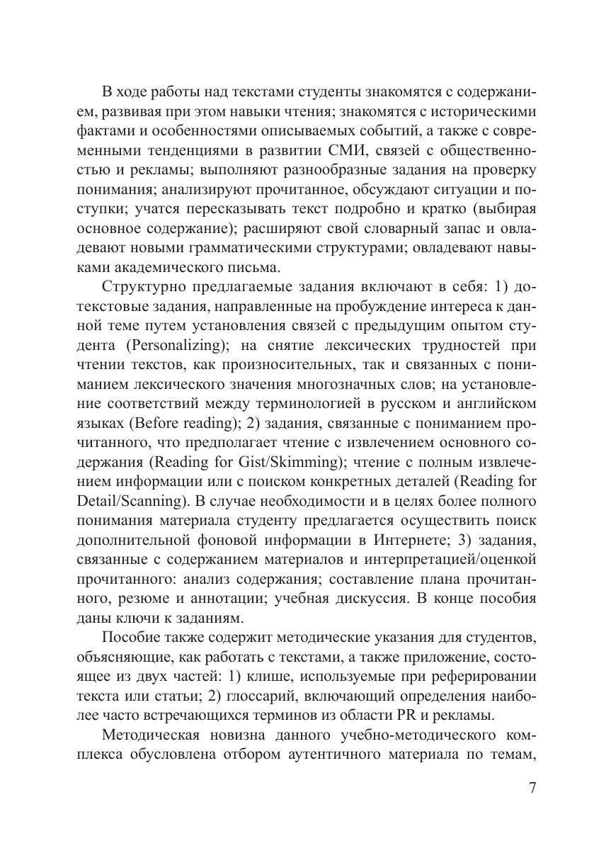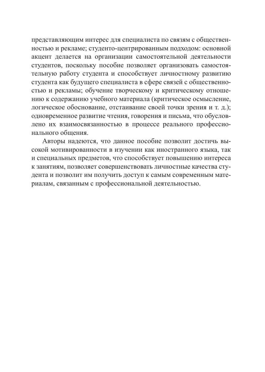 Материалом для контрольных заданий послужили аутентичные тексты, что дает возможность более глубокого вхождения в иноязычную среду. для студентов и магистрантов, обучающихся поспециальности «реклама и связи с общественностью».