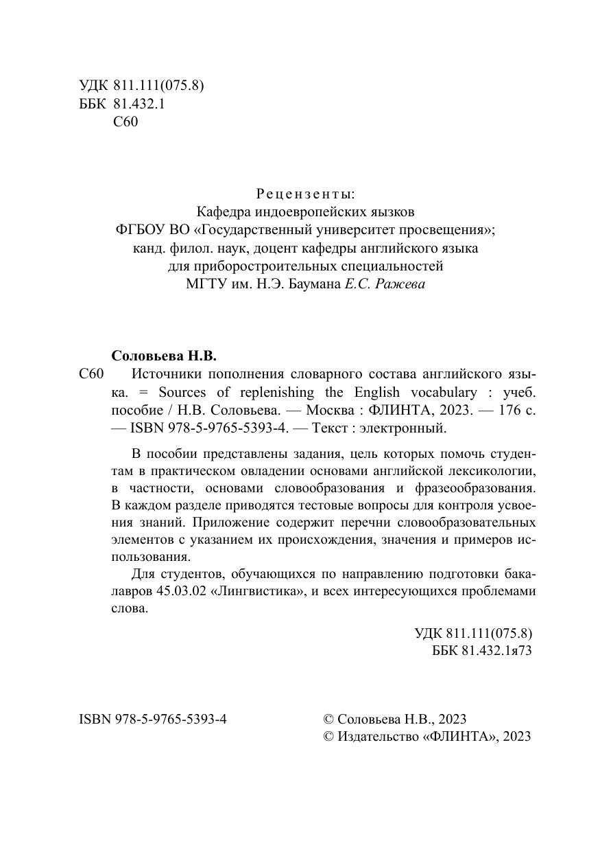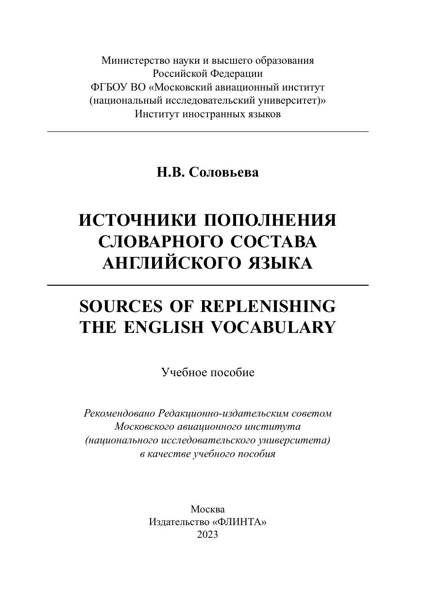 Источники пополнения словарного состава английского языка / Sources or replenishing the English vocabulary