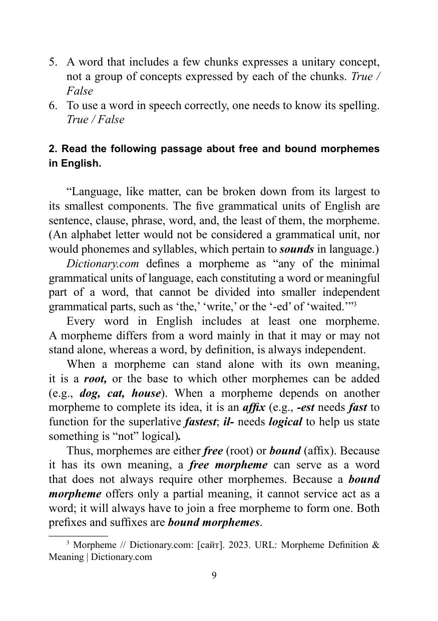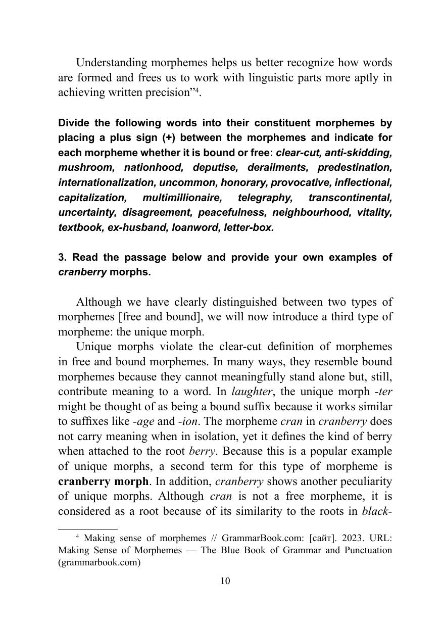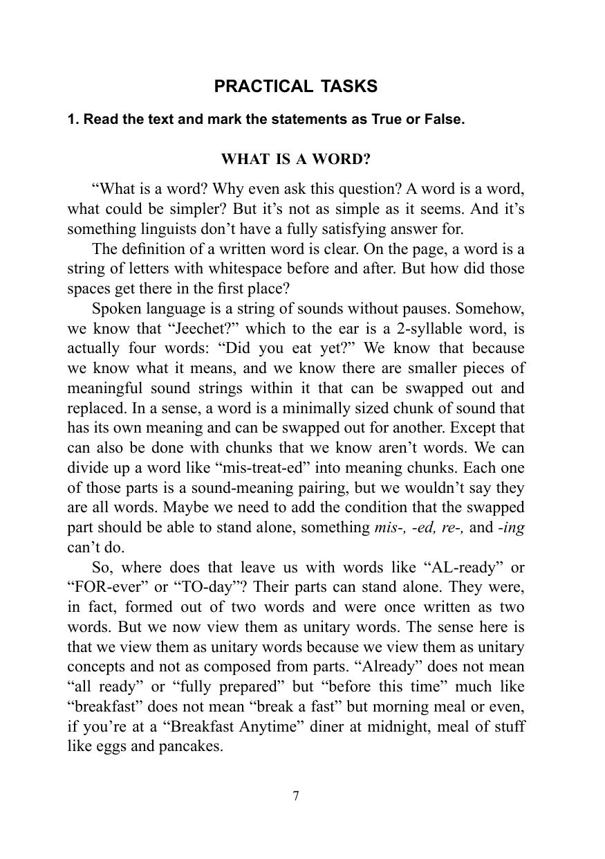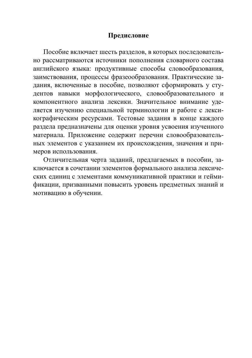 В пособии представлены задания, цель которых помочь студентам в практическом овладении основами английской лексикологии, в частности, основами словообразования и фразеообразования. В каждом разделе приводятся тестовые вопросы для контроля усвоения знаний. Приложение содержит перечни словообразовательных элементов с указанием их происхождения, значения и примеров использования.