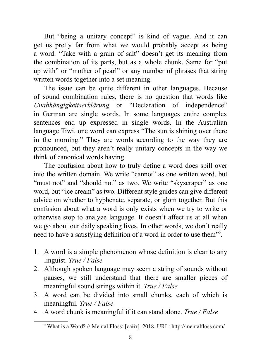 Для студентов, обучающихся по направлению подготовки бакалавров 45.03.02 «Лингвистика», и всех интересующихся проблемами слова.