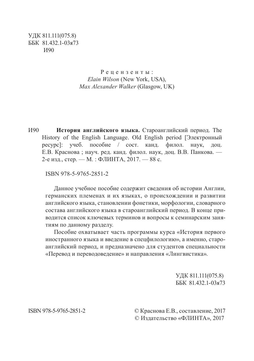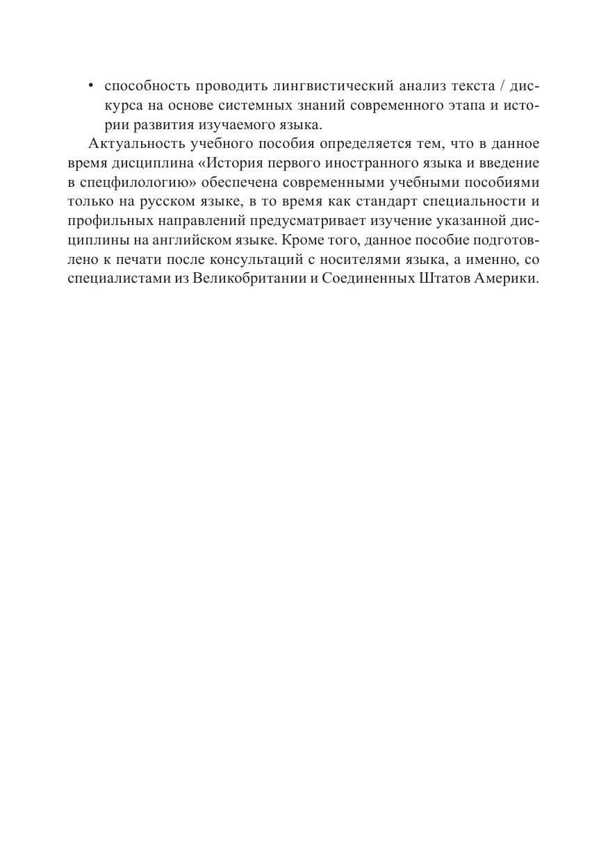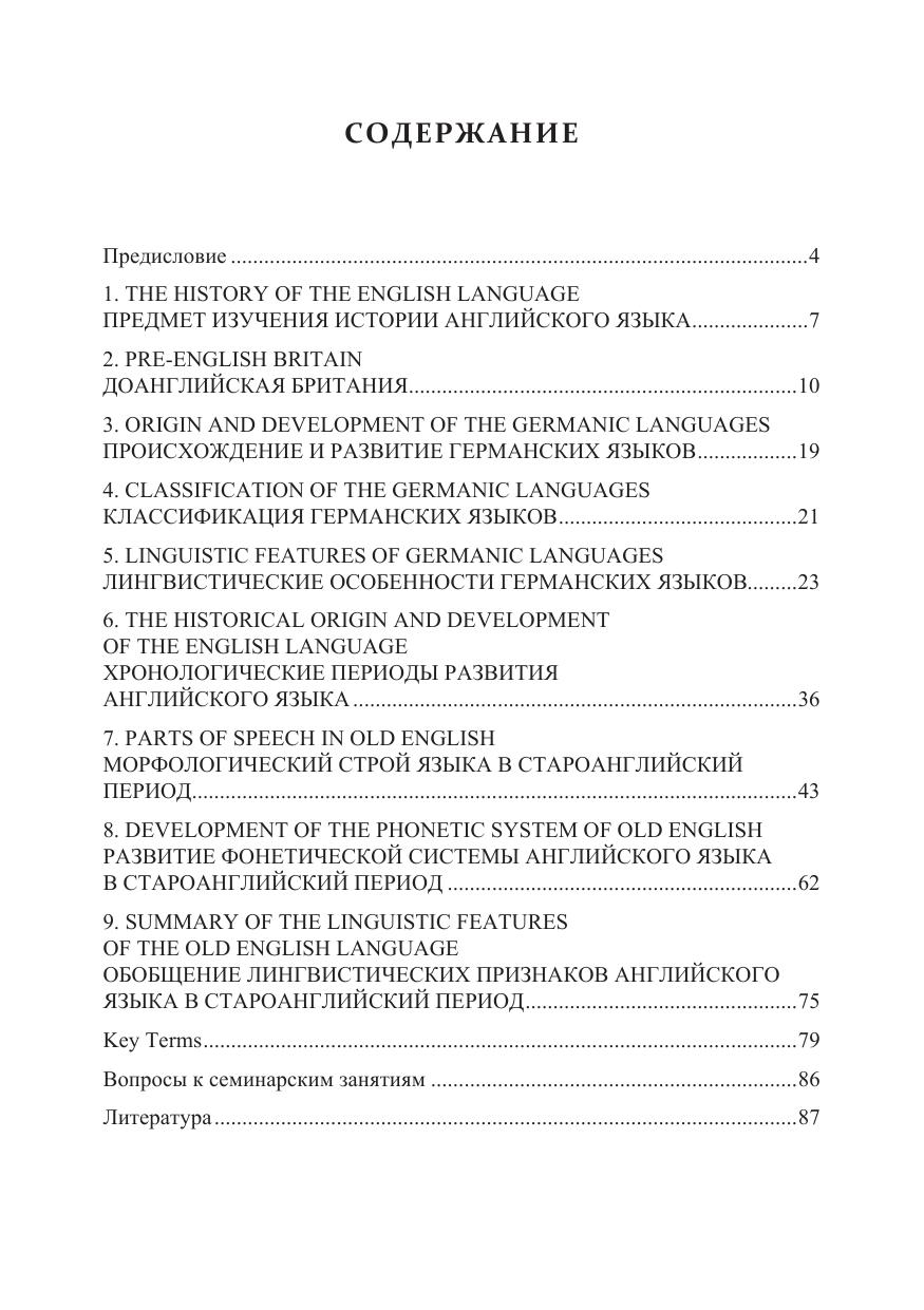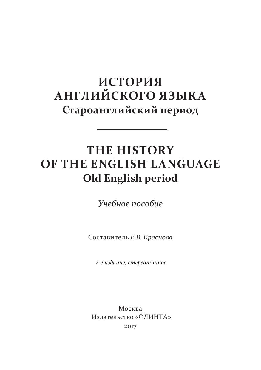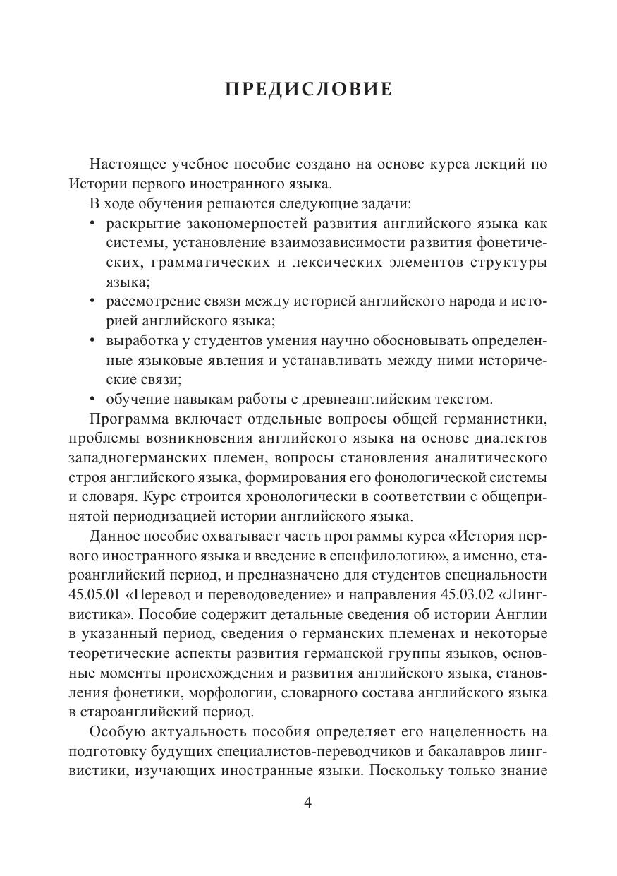 Данное учебное пособие содержит сведения об истории Англии, германских племенах и их языках, о происхождении и развитии английского языка, становлении фонетики, морфологии, словарного состава английского языка в староанглийский период. В конце приводится список ключевых терминов и вопросы к семинарским занятиям по данному разделу. Пособие охватывает часть программы курса «История первого иностранного языка и введение в спецфилологию», а именно, староанглийский период, и предназначено для студентов специальности «Перевод и переводоведение» и направления «Лингвистика».