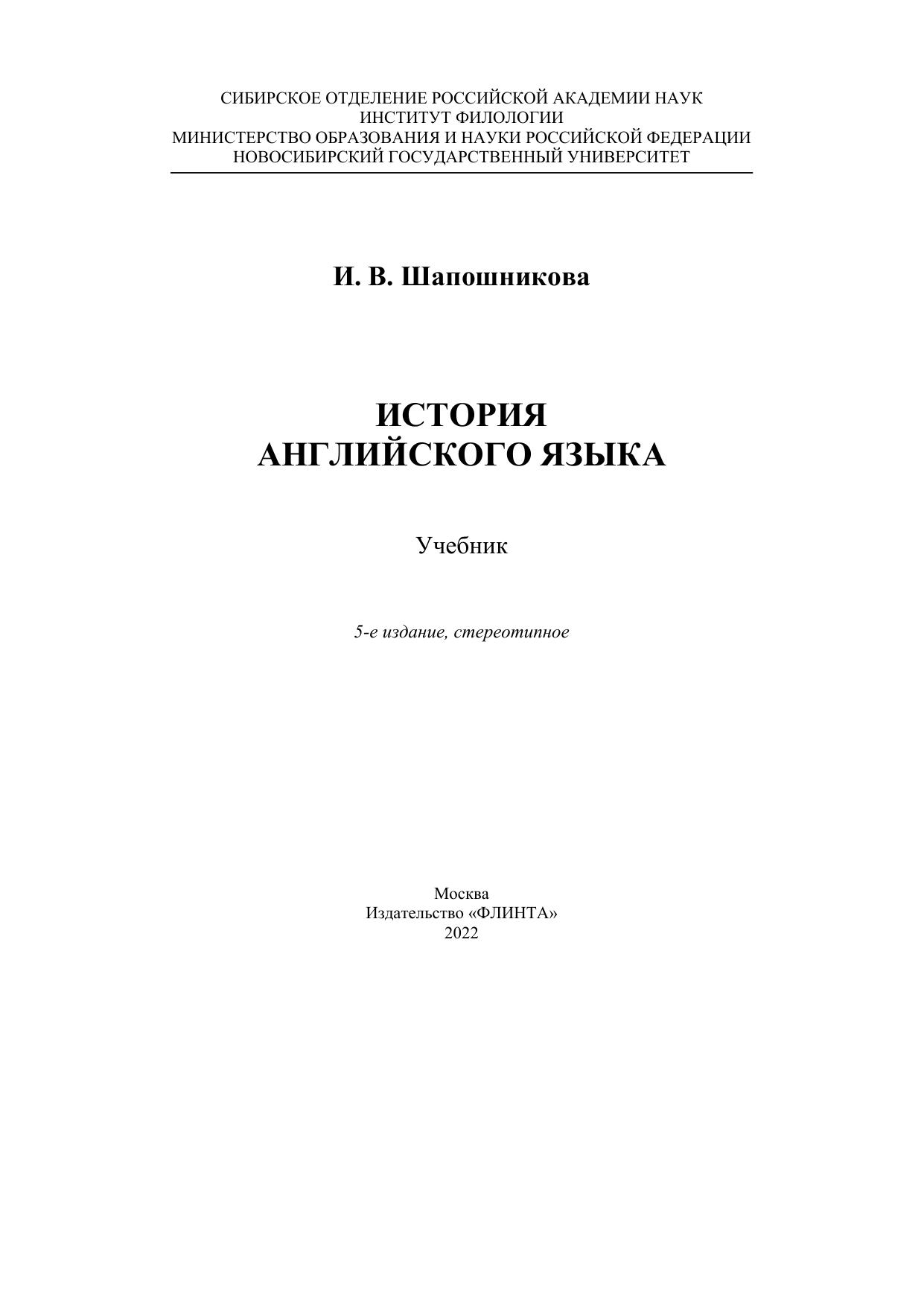 The author approaches the study of language history as an interdisciplinary field in which various aspects (ethnolinguistic, typological, systemic) complement each other. The textbook provides a system of concepts for such a study with respect to the interaction between ethnogenetic (external) and linguistic (internal) phenomena shaping the structural type of the English language system. The author applies these concepts to the description of typologically relevant changes in phonology, morphology, syntax, and lexicon as well as the developmental stages of ethnogenetic influences. The organization of materials enables the reader to reveal and trace the logic of the language history through analyses of textual evidence. The textbook is supplemented with carefully selected materials (summarizing tables and diagrams, pictures, maps, a glossary and bibliographical references).