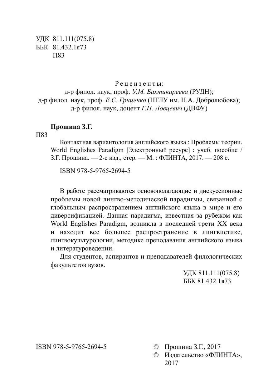 Контактная вариантология английского языка : Проблемы теории. World Englishes Paradigm : учеб. пособие