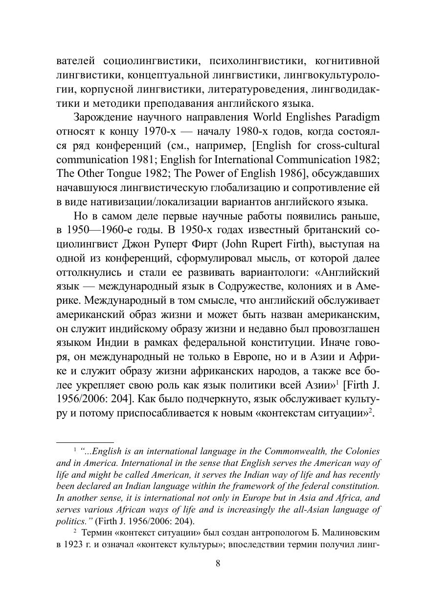 В работе рассматриваются основополагающие и дискуссионные проблемы новой лингво-методической парадигмы, связанной с глобальным распространением английского языка в мире и его диверсификацией. Данная парадигма, известная за рубежом как World Englishes Paradigm, возникла в последней трети ХХ века и находит все большее распространение в лингвистике, лингвокультурологии, методике преподавания английского языка и литературоведении.