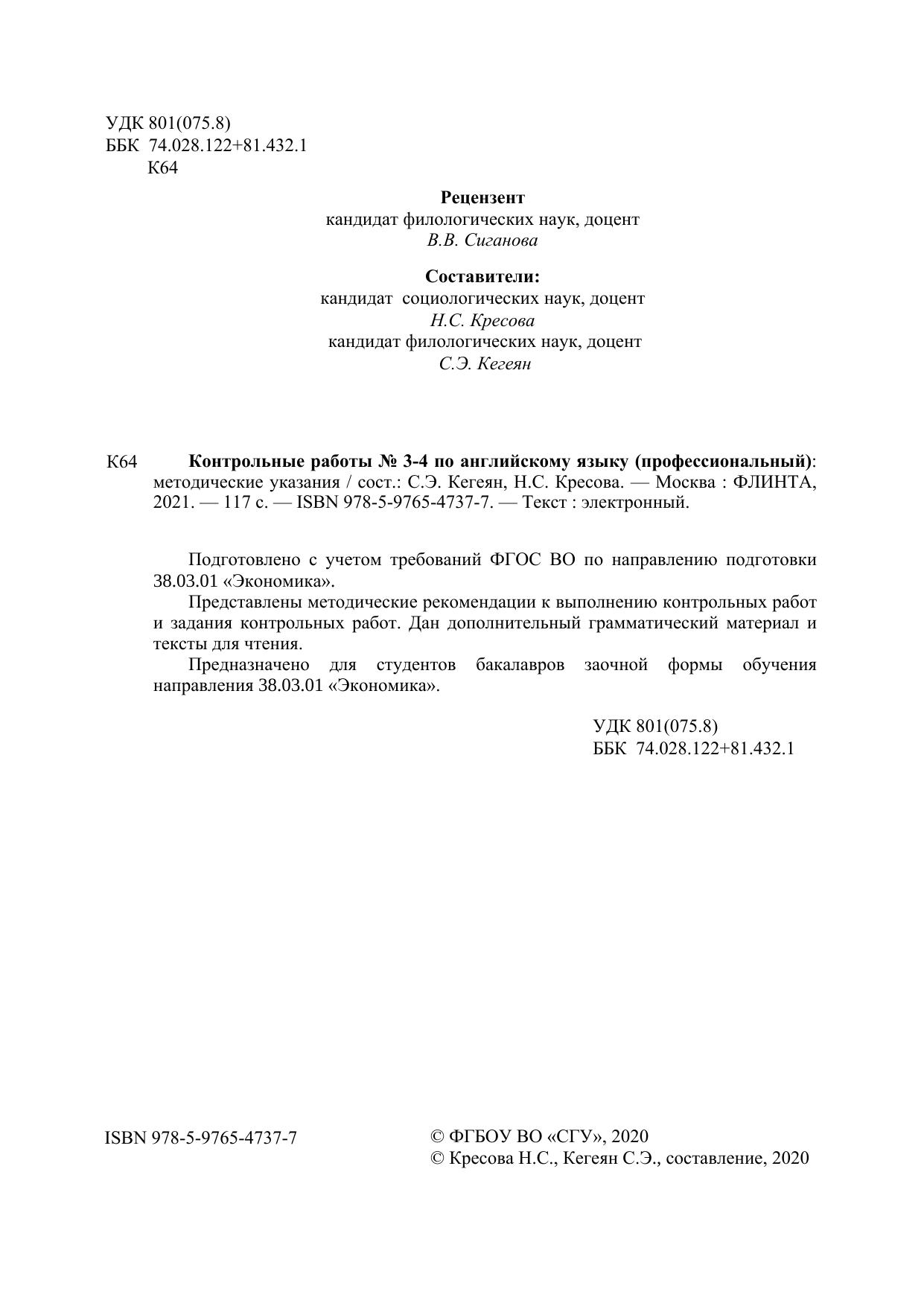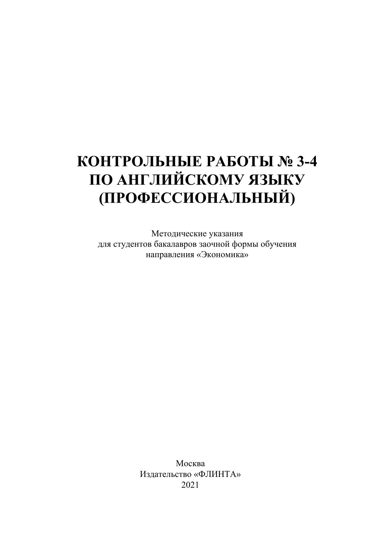 Контрольные работы № 3-4 по английскому языку (профессиональный)