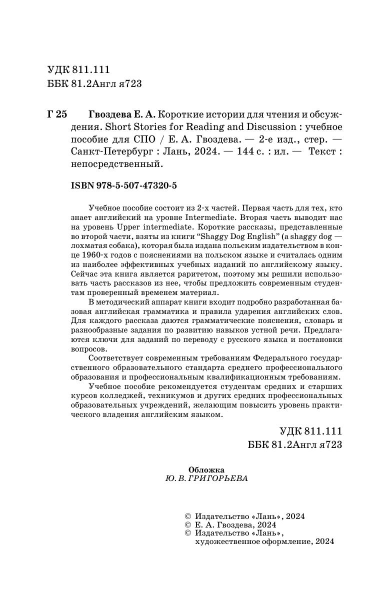 Учебное пособие состоит из 2-х частей. Первая часть для тех, кто знает английский на уровне Intermediate. Вторая часть выводит нас на уровень Upper intermediate. Короткие рассказы, представленные во второй части, взяты из книги “Shaggy Dog English” (a shaggy dog — лохматая собака), которая была издана польским издательством в конце 1960-х годов с пояснениями на польском языке и считалась одним из наиболее эффективных учебных изданий по английскому языку. Сейчас эта книга является раритетом, поэтому мы решили использовать часть рассказов из нее, чтобы предложить современным студентам проверенный временем материал. В методический аппарат книги входит подробно разработанная базовая английская грамматика и правила ударения английских слов. Для каждого рассказа даются грамматические пояснения, словарь и разнообразные задания по развитию навыков устной речи. Предлагаются ключи для заданий по переводу с русского языка и постановки вопросов. Соответствует современным требованиям Федерального государственного образовательного стандарта среднего профессионального образования и профессиональным квалификационным требованиям. Учебное пособие рекомендуется студентам средних и старших курсов колледжей, техникумов и других средних профессиональных образовательных учреждений, желающим повысить уровень практического владения английским языком.
