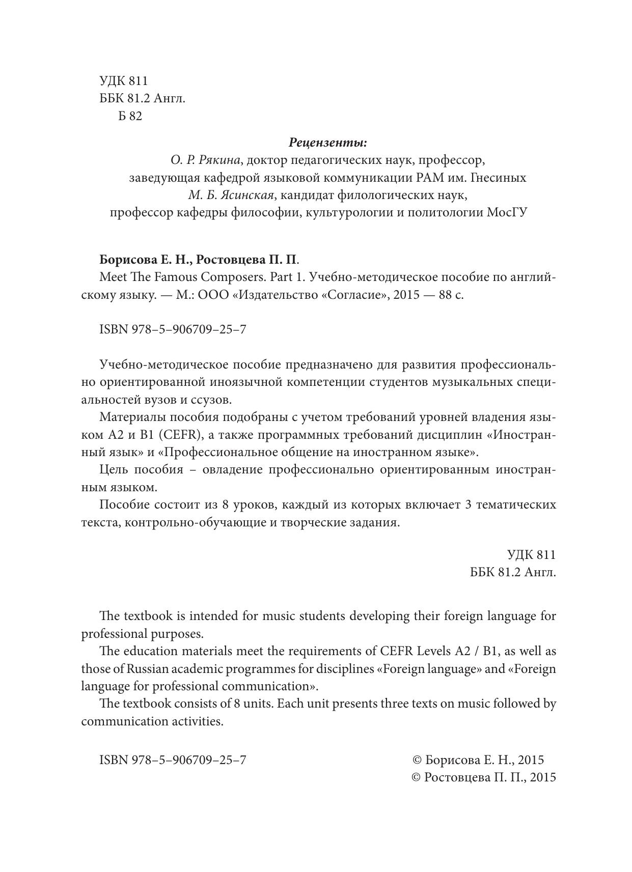 Учебно-методическое пособие предназначено для развития профессионально ориентированной иноязычной компетенции студентов музыкальных специальностей вузов и ссузов.