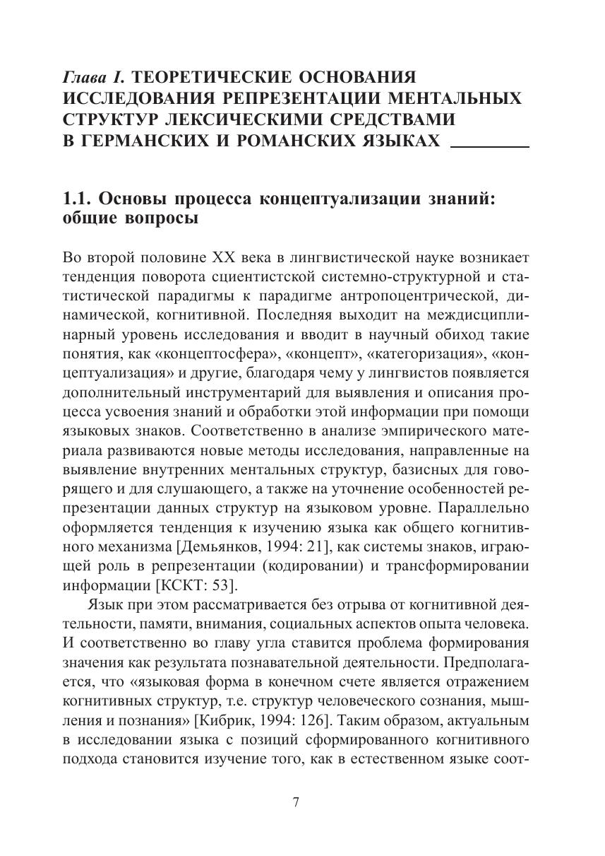 Ментальные структуры и их репрезентация лексическими средствами в германских и романских языках