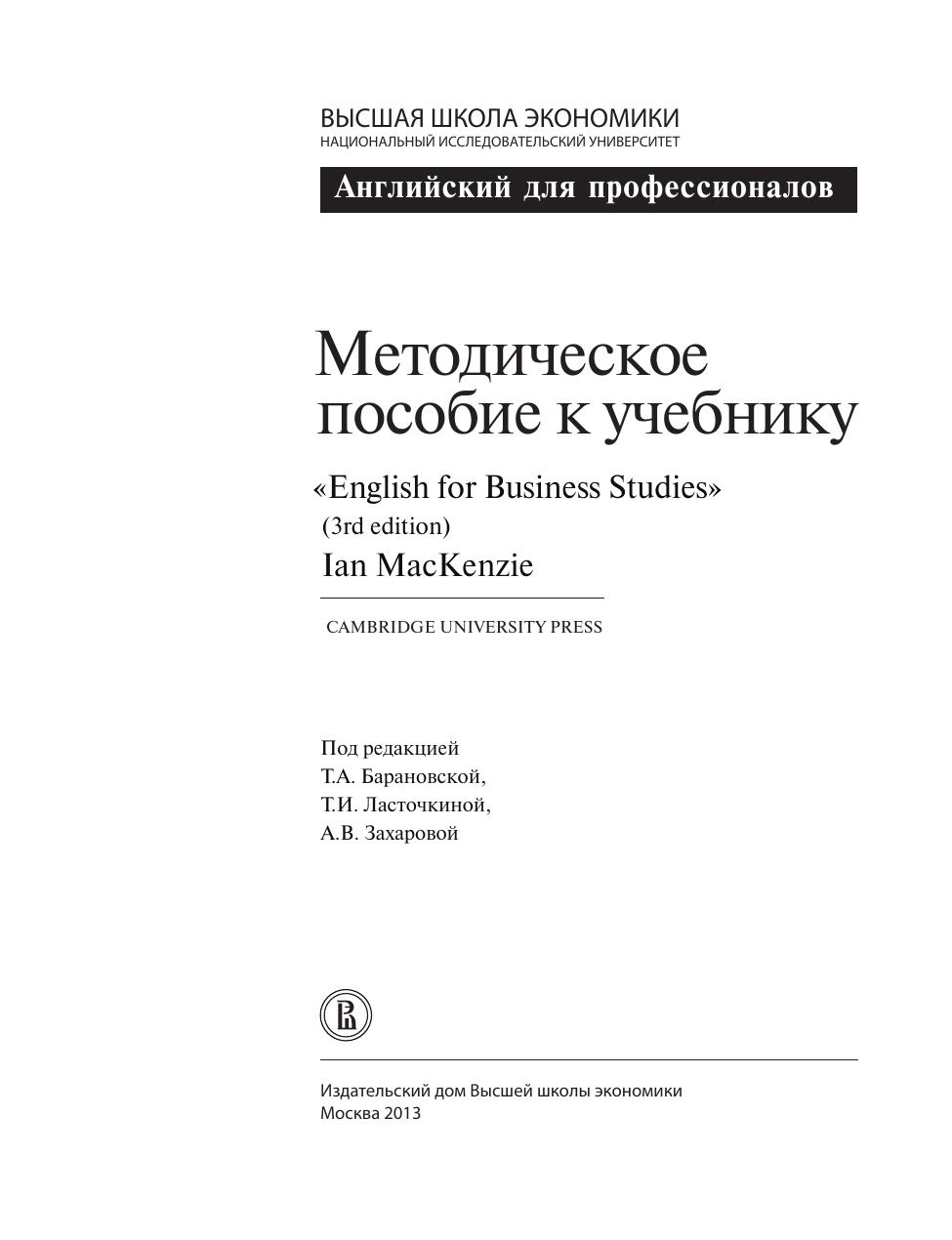 Методическое пособие к учебнику «English for business studies» by Ian MacKenzie (3rd ed.)