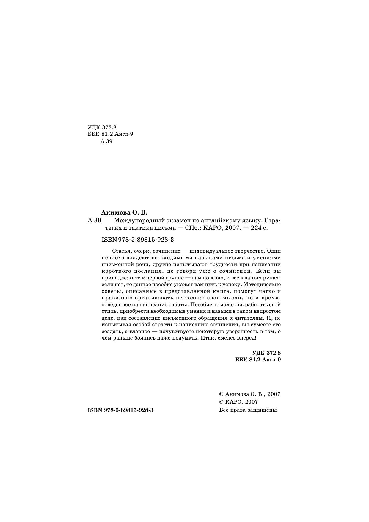 Международный экзамен по английскому языку. Стратегия и тактика письма