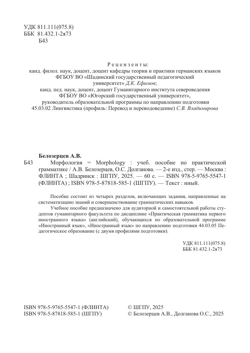 Учебное пособие предназначено для аудиторной и самостоятельной работы студентов гуманитарного факультета по дисциплине «Практическая грамматика первого иностранного языка» (английский), обучающихся по образовательной программе «Иностранный язык», «Иностранный язык» по направлению подготовки 44.03.05 Педагогическое образование (с двумя профилями подготовки).