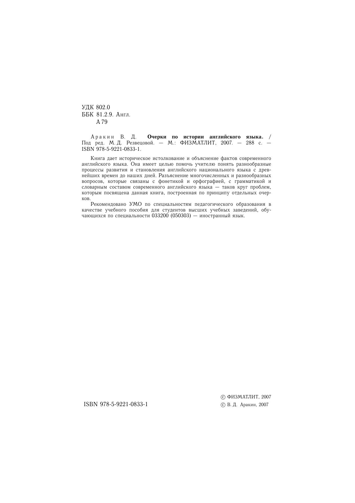 Книга дает историческое истолкование и объяснение фактов современного английского языка. Она имеет целью помочь учителю понять разнообразные процессы развития и становления английского национального языка с древнейших времен до наших дней. Разъяснение многочисленных и разнообразных вопросов, которые связаны с фонетикой и орфографией, с грамматикой и словарным составом современного английского языка — таков круг проблем, которым посвящена данная книга, построенная по принципу отдельных очерков.