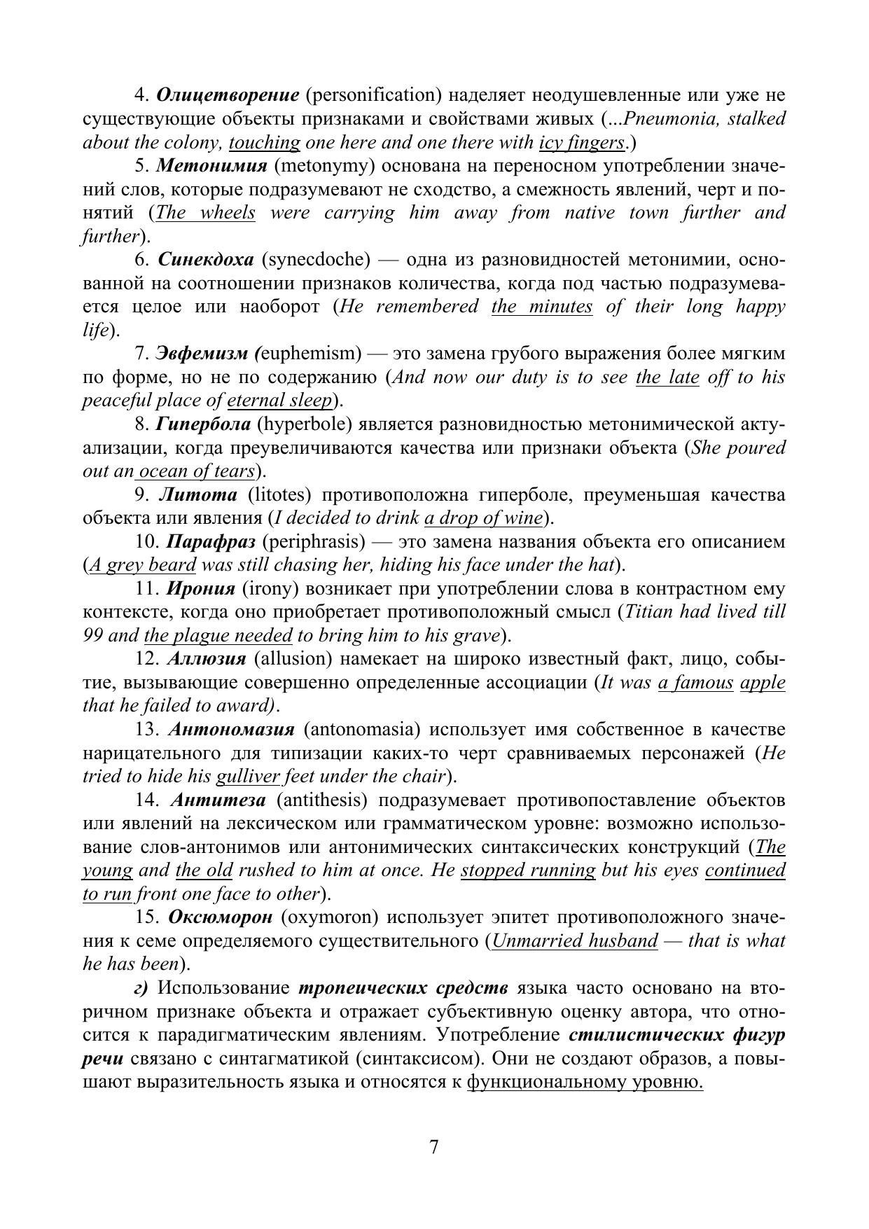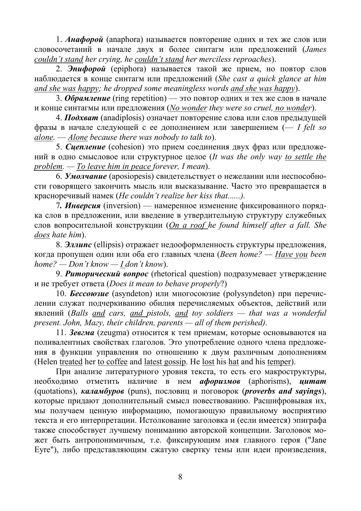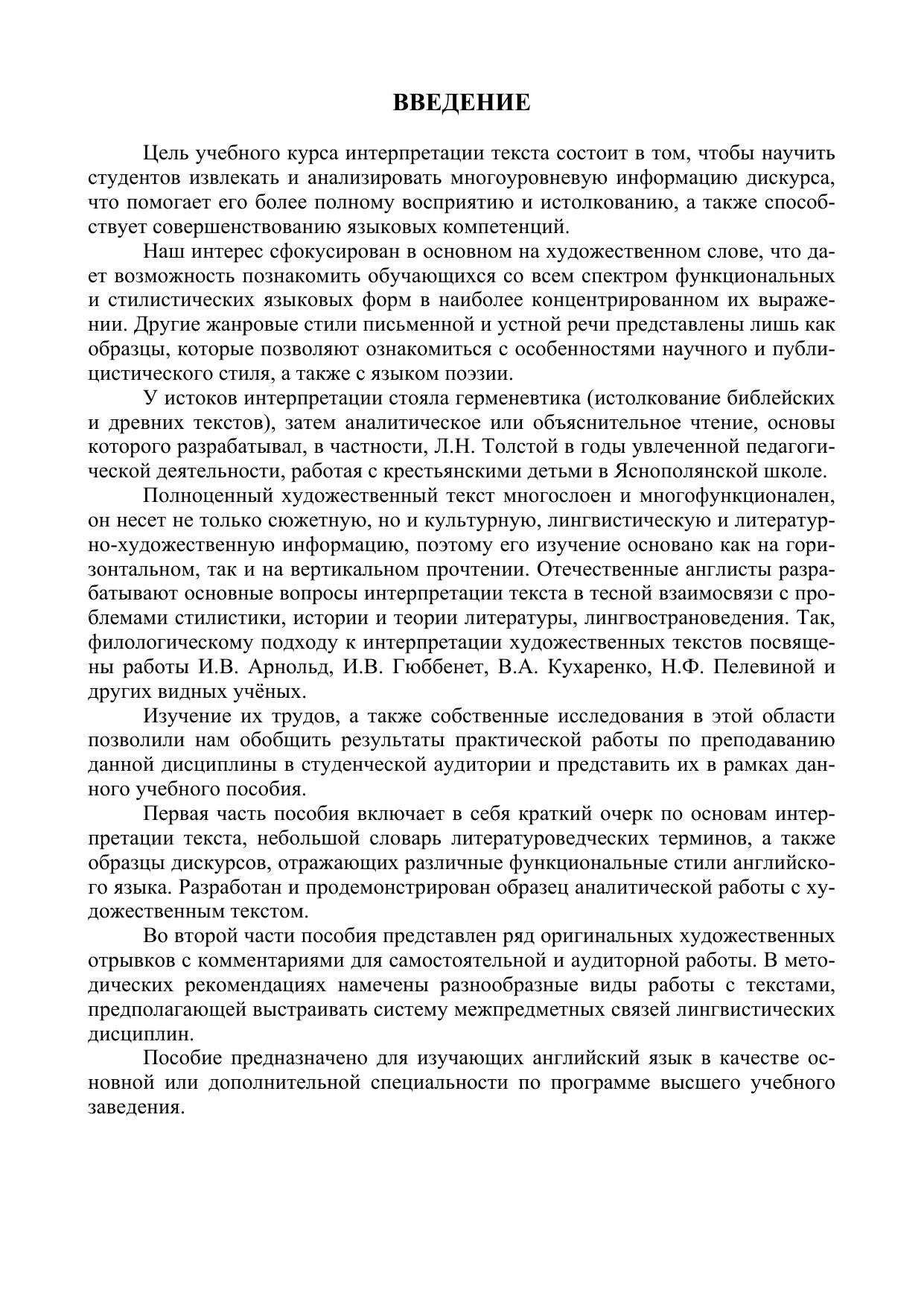 В теоретической части работы даны основные параметры анализа лингвистики текста и его литературной формы. Здесь же представлен краткий словарь литературных терминов. Вторая часть пособия представляет собой комплекс художественных образцов из классической и современной англоязычной литературы, которые подобраны для интерпретации разностилевого материала на языке оригинала. Помимо этого, тексты сопровождаются лингвистическими комментариями и сведениями об их авторах.