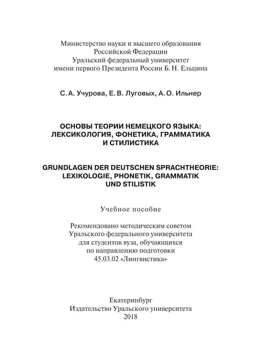Основы теории немецкого языка: лексикология, фонетика, грамматика и стилистика = Grundlagen der deutschen Sprachtheorie: Lexikologie, Phonetik, Grammatik und Stilistik