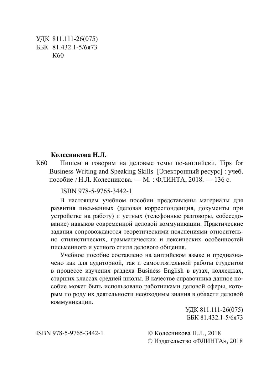 В настоящем учебном пособии представлены материалы для развития письменных (деловая корреспонденция, документы при устройстве на работу) и устных (телефонные разговоры, собеседование) навыков современной деловой коммуникации. Практические задания сопровождаются теоретическими пояснениями относительно стилистических, грамматических и лексических особенностей письменного и устного стиля делового общения. Учебное пособие составлено на английском языке и предназначено как для аудиторной, так и самостоятельной работы студентов в процессе изучения раздела Business English в вузах, колледжах, старших классах средней школы. В качестве справочника данное пособие может быть использовано работниками деловой сферы, которым по роду их деятельности необходимы знания в области деловой коммуникации.