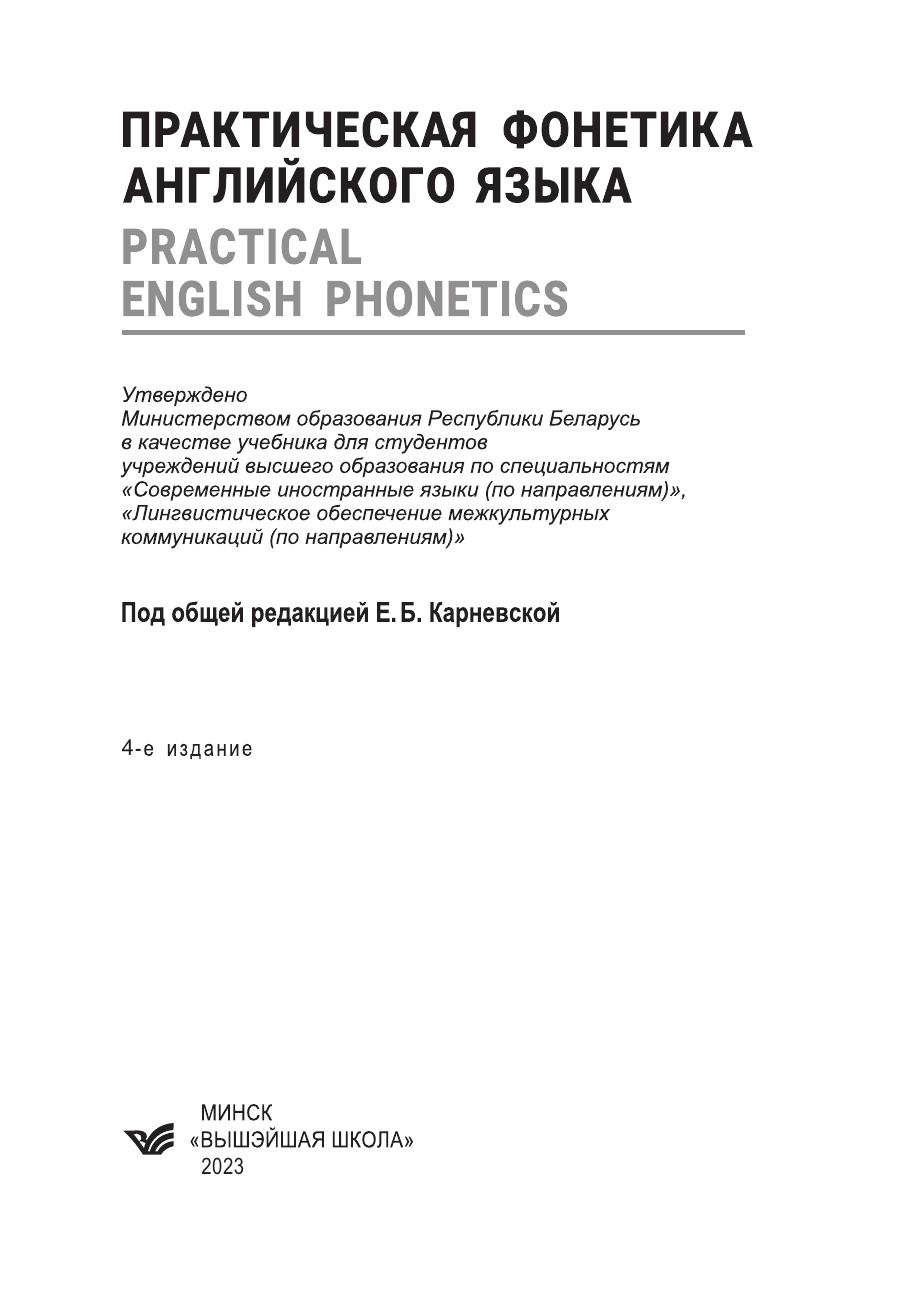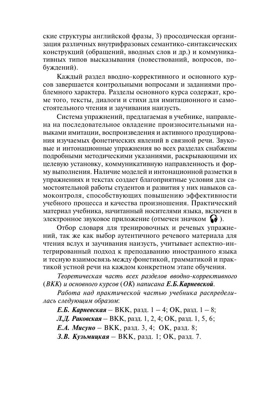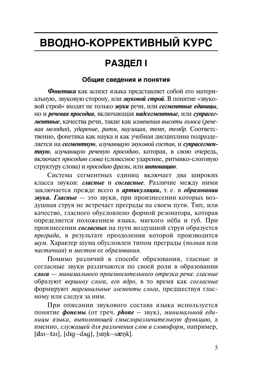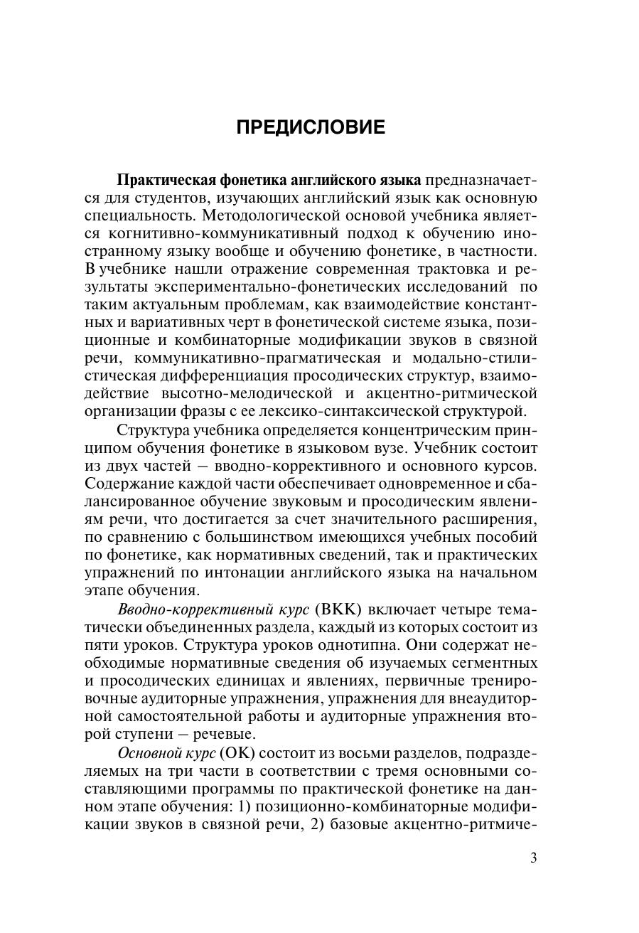 Состоит из вводно-коррективного и основного курсов. Содержит теоретические сведения о звуковых и интонационных явлениях, практические упражнения для овладения произносительными навыками, а также речевой материал для чтения вслух и заучивания наизусть (тексты, стихи, песни). Модели, ключи и интонационная разметка в упражнениях и текстах обеспечивают возможность самостоятельной работы и самоконтроля. Электронное звуковое приложение включает весь практический материал учебника, начитанный носителями языка. Для студентов учреждений высшего образования. Может быть использовано учащимися лицеев, гимназий, а так же всеми желающими совершенствоваться в английском произношении.