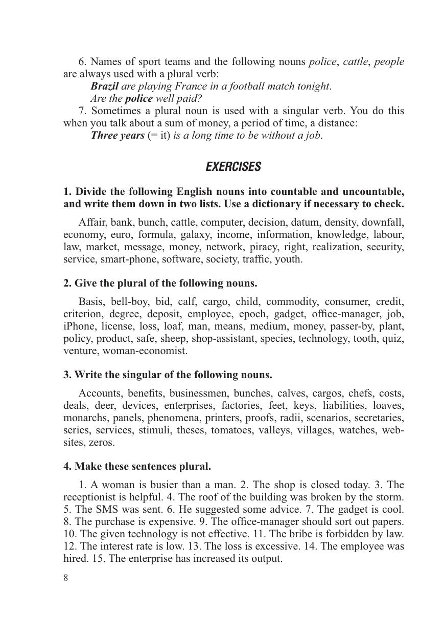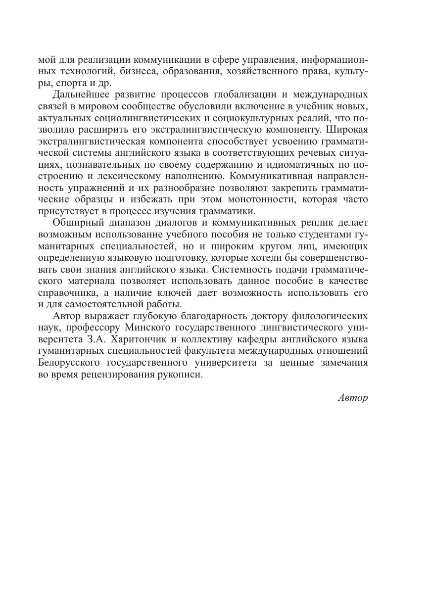 Грамматические навыки закрепляются с помощью системы коммуникативно-ориентированных упражнений, направленных на подачу грамматического материала в речевых образцах, рецептивное усвоение отдельных грамматических структур, а также моделирование упражнений направленных на подачу грамматического материала в речевых образцах, рецептивное усвоение отдельных грамматических структур, а также моделирование упражнений на продуцирование устной и письменной речи. Упражнения разработаны на основе аутентичной языковой базы, сочетающей общую, разговорную и профессионально ориентированную лексику, что позволяет усвоить страноведческую информацию, необходимую для пребывания в стране, и широкую экономическую информацию, обеспечивающую коммуникацию специалистов в рамках профессиональной сферы. Для студентов специальности "Лингвистическое обеспечение межкультурных коммуникаций (внешнеэкономические связи)", а также других специальностей вузов экономического профиля и широкого круга людей, которые изучают английский язык.