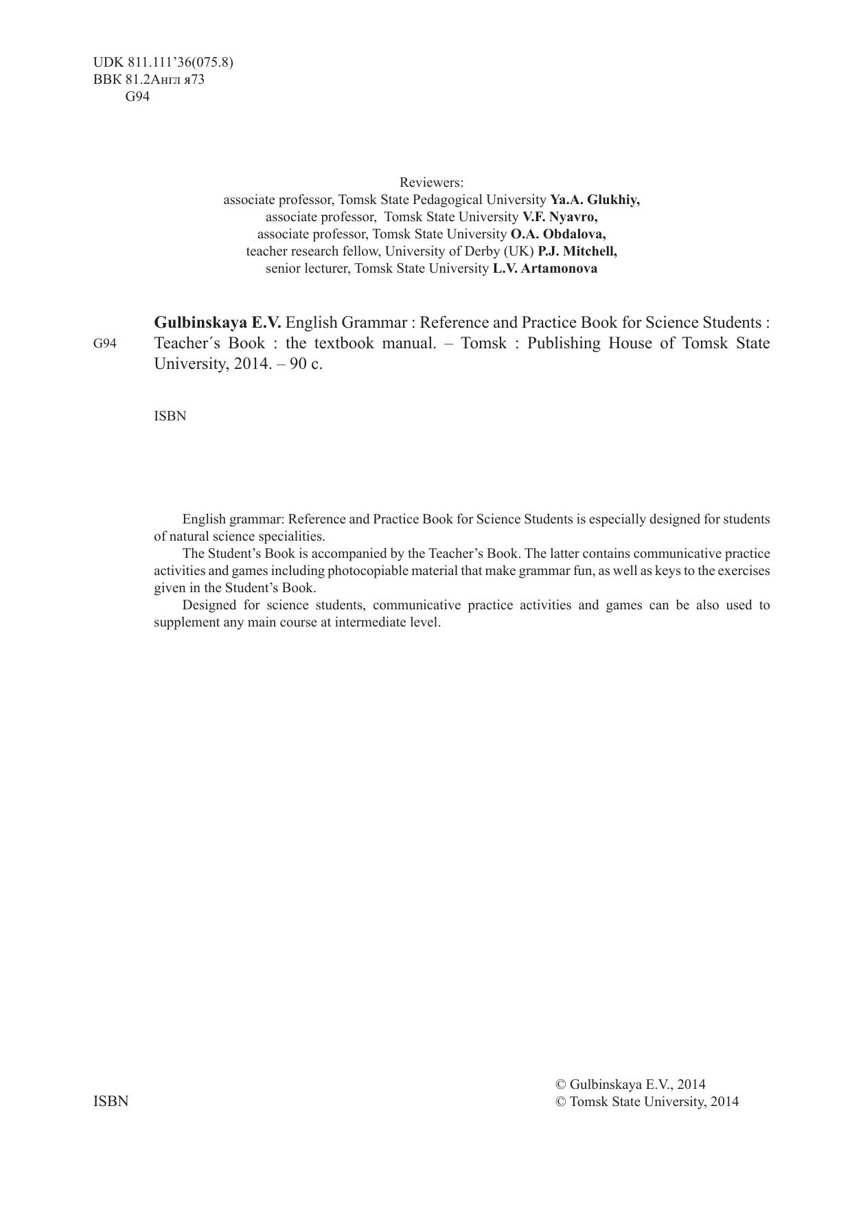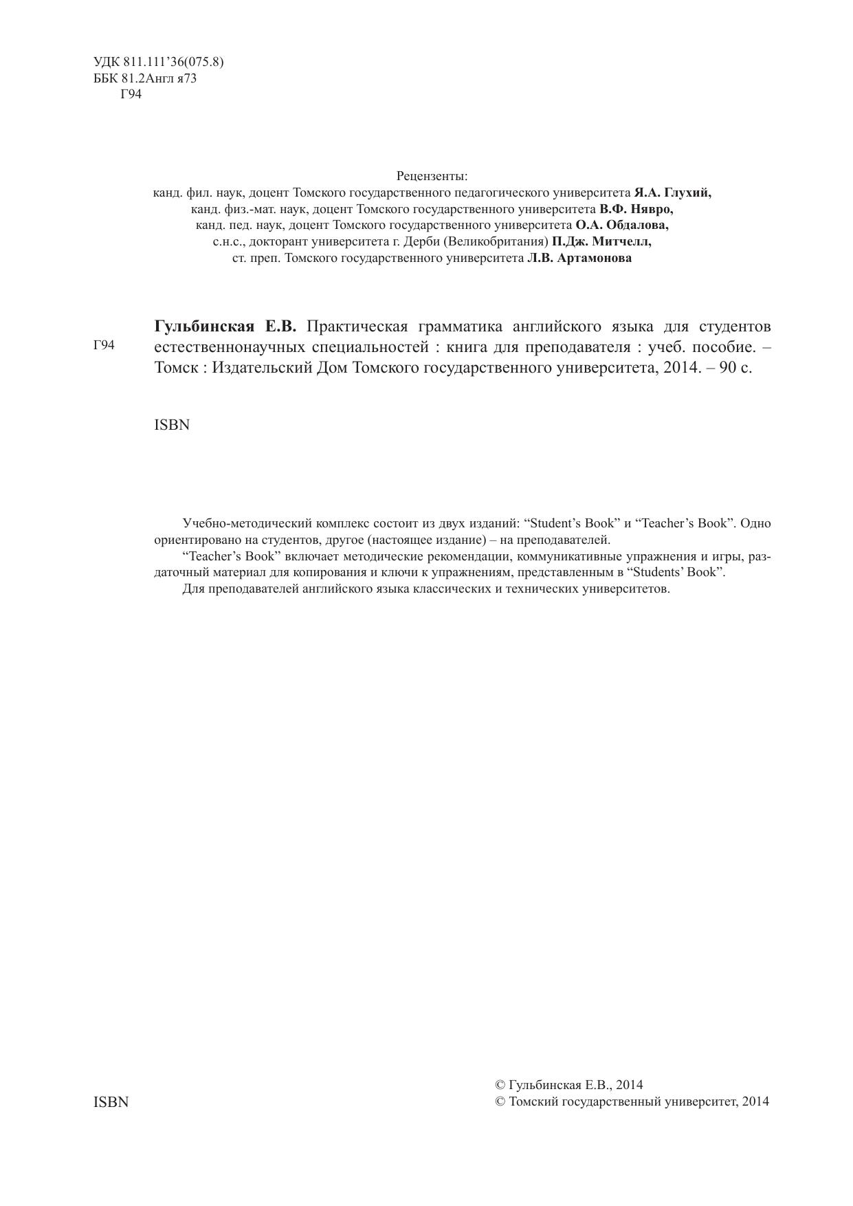 Практическая грамматика английского языка для студентов естественнонаучных специальностей: книга для преподавателя