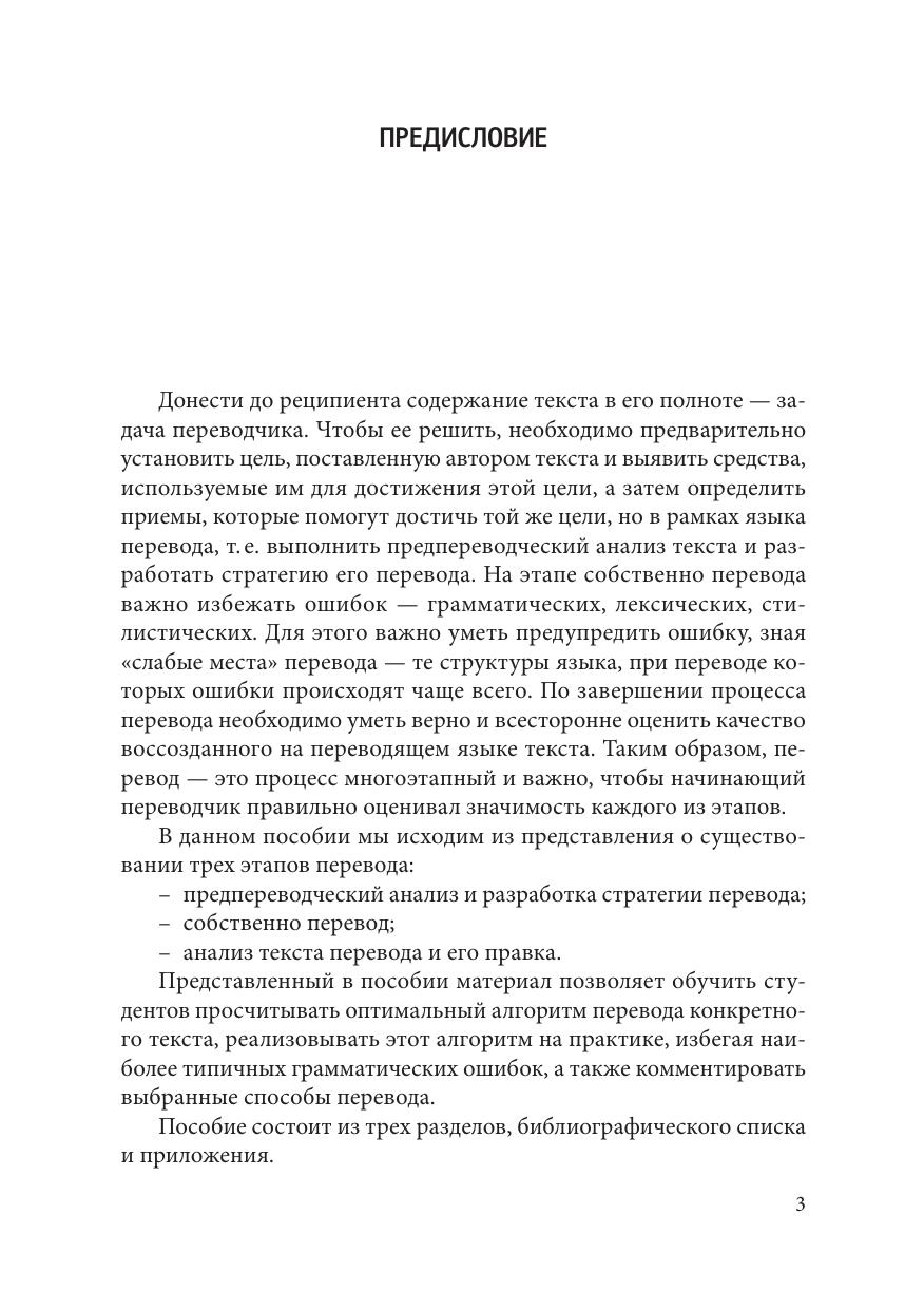 Основной целью пособия является формирование у студентов представления о процессе перевода как поэтапной деятельности, а также отработка умения просчитывать оптимальный алгоритм перевода конкретного текста, основываясь на анализе языковых средств оформления данного текста. Кроме того, в пособии уделяется внимание ошибкам, которые начинающие переводчики делают при переводе с английского языка на русский, и способам их избежать.