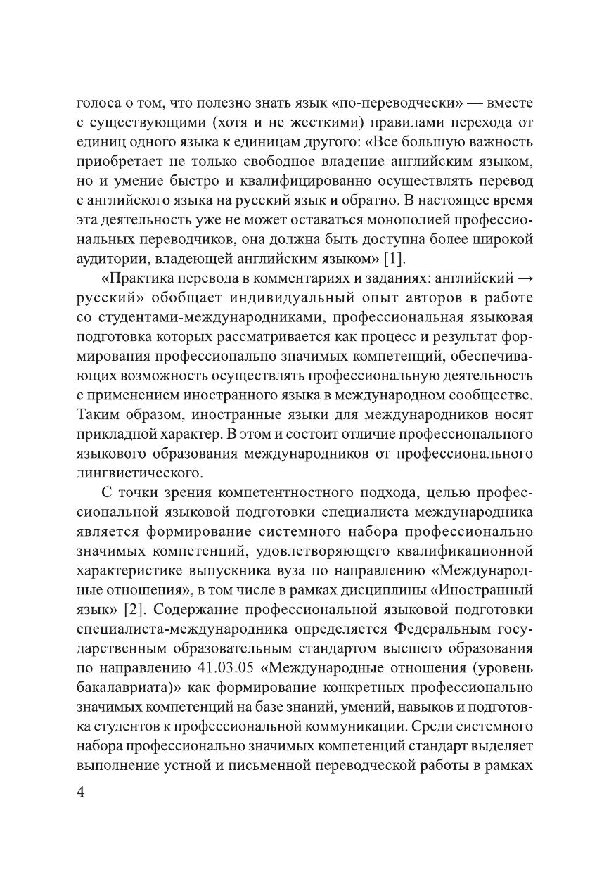 Учебное пособие направлено на формирование профессиональной компетентности будущих переводчиков в области письменного и в ограниченном объеме устного перевода (с английского языка на русский). Представлена оригинальная авторская методика обучения переводу. В учебных целях привлечены как узкоспециальные тексты, так и тексты общенаучного и официального характера, а также профессионально ориентированные тексты по международным отношениям.