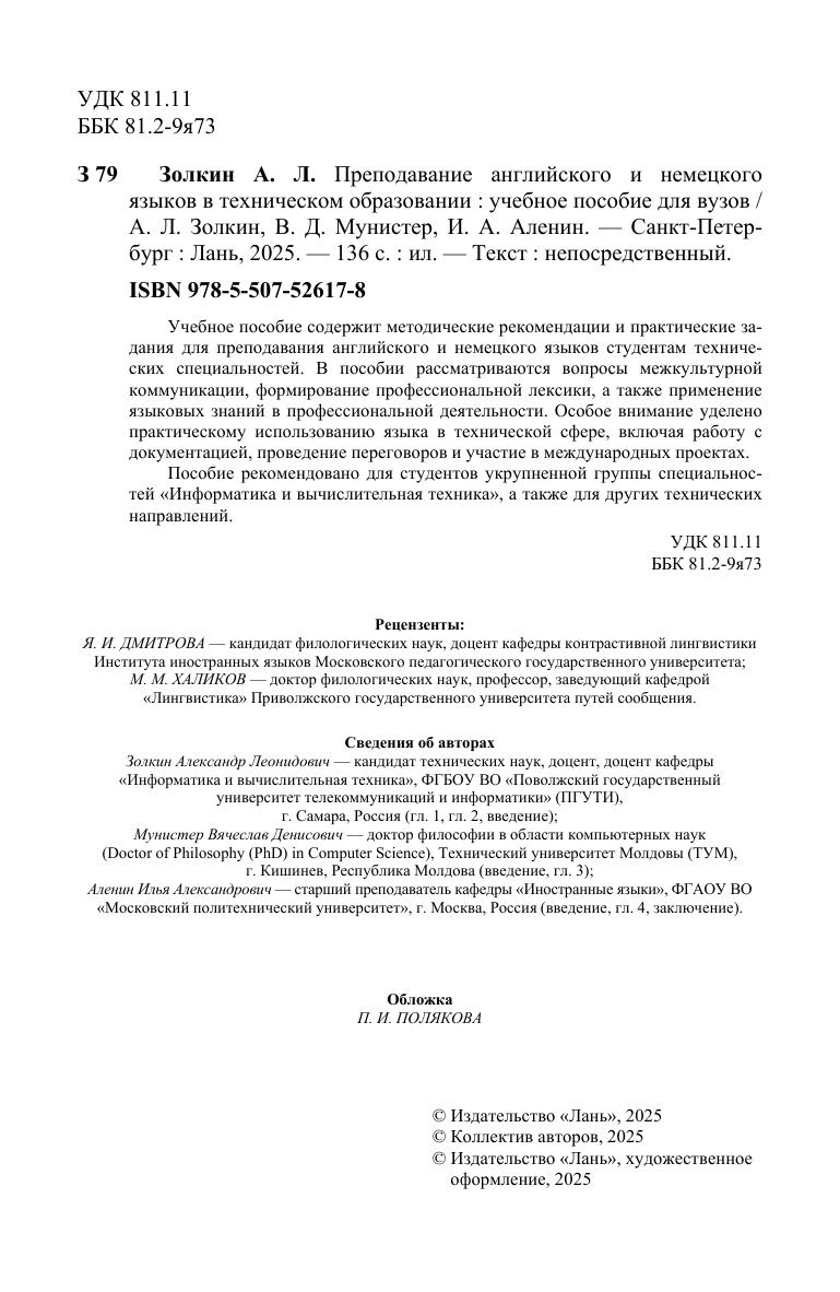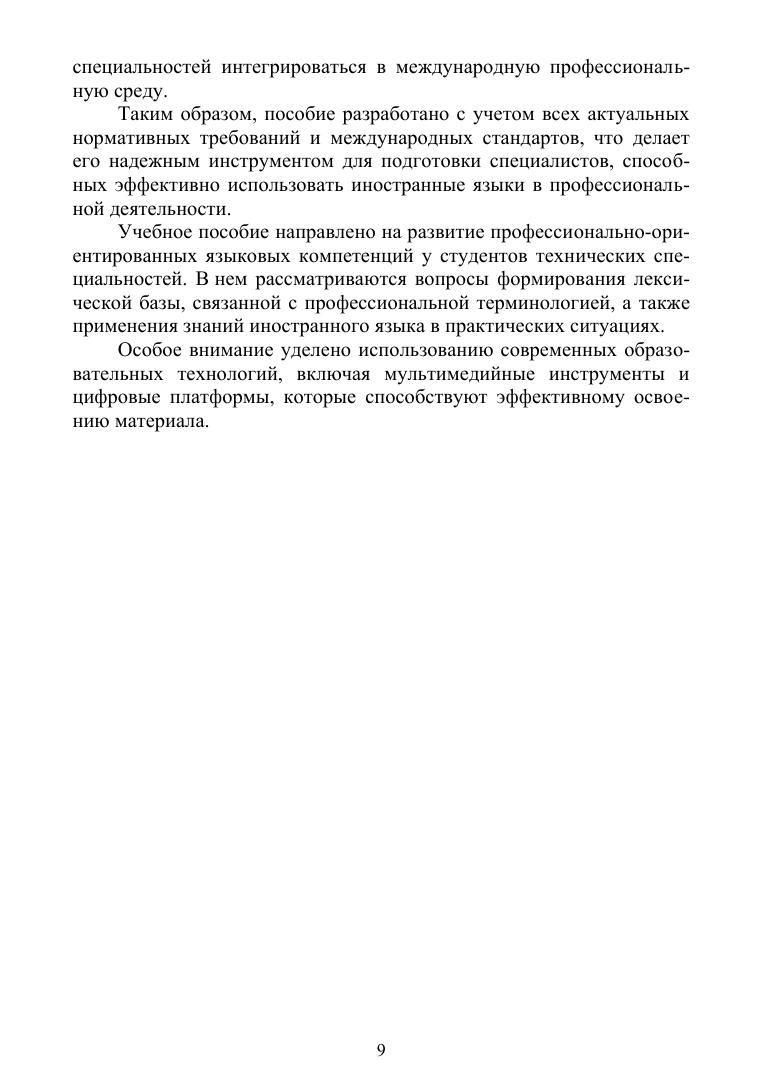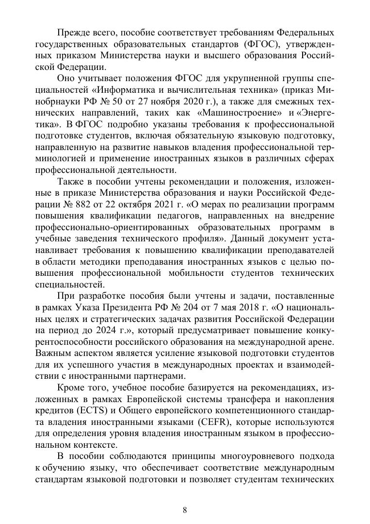 Учебное пособие содержит методические рекомендации и практические задания для преподавания английского и немецкого языков студентам технических специальностей. В пособии рассматриваются вопросы межкультурной коммуникации, формирование профессиональной лексики, а также применение языковых знаний в профессиональной деятельности. Особое внимание уделено практическому использованию языка в технической сфере, включая работу с документацией, проведение переговоров и участие в международных проектах. Пособие рекомендовано для студентов укрупненной группы специальностей «Информатика и вычислительная техника», а также для других технических направлений.
