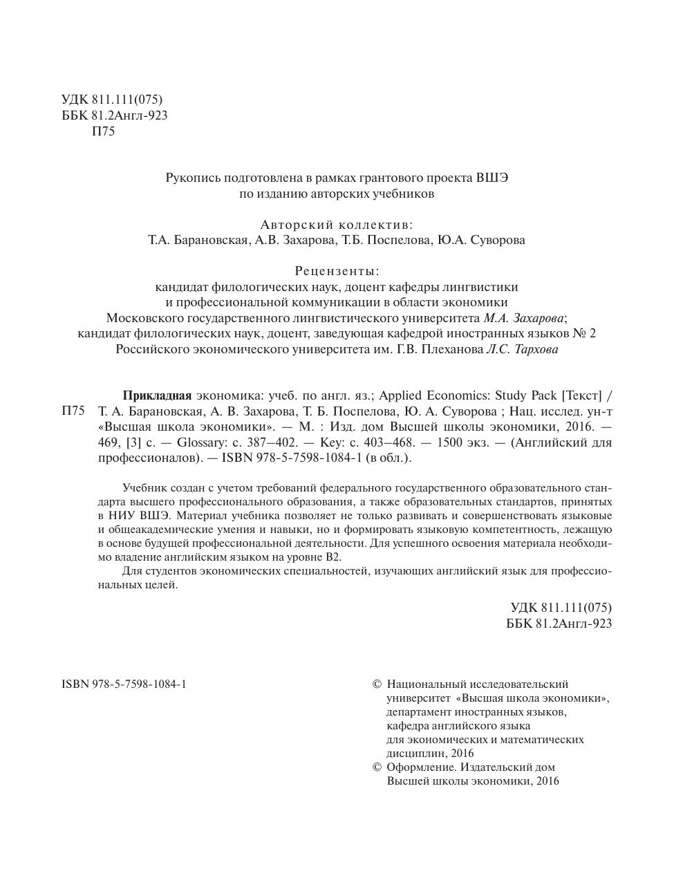 Учебник создан с учетом требований федерального государственного образовательного стандарта высшего профессионального образования, а также образовательных стандартов, принятых в НИУ ВШЭ. Материал учебника позволяет не только развивать и совершенствовать языковые и общеакадемические умения и навыки, но и формировать языковую компетентность, лежащую в основе будущей профессиональной деятельности. Для успешного освоения материала необходимо владение английским языком на уровне В2. Для студентов экономических специальностей, изучающих английский язык для профессиональных целей.