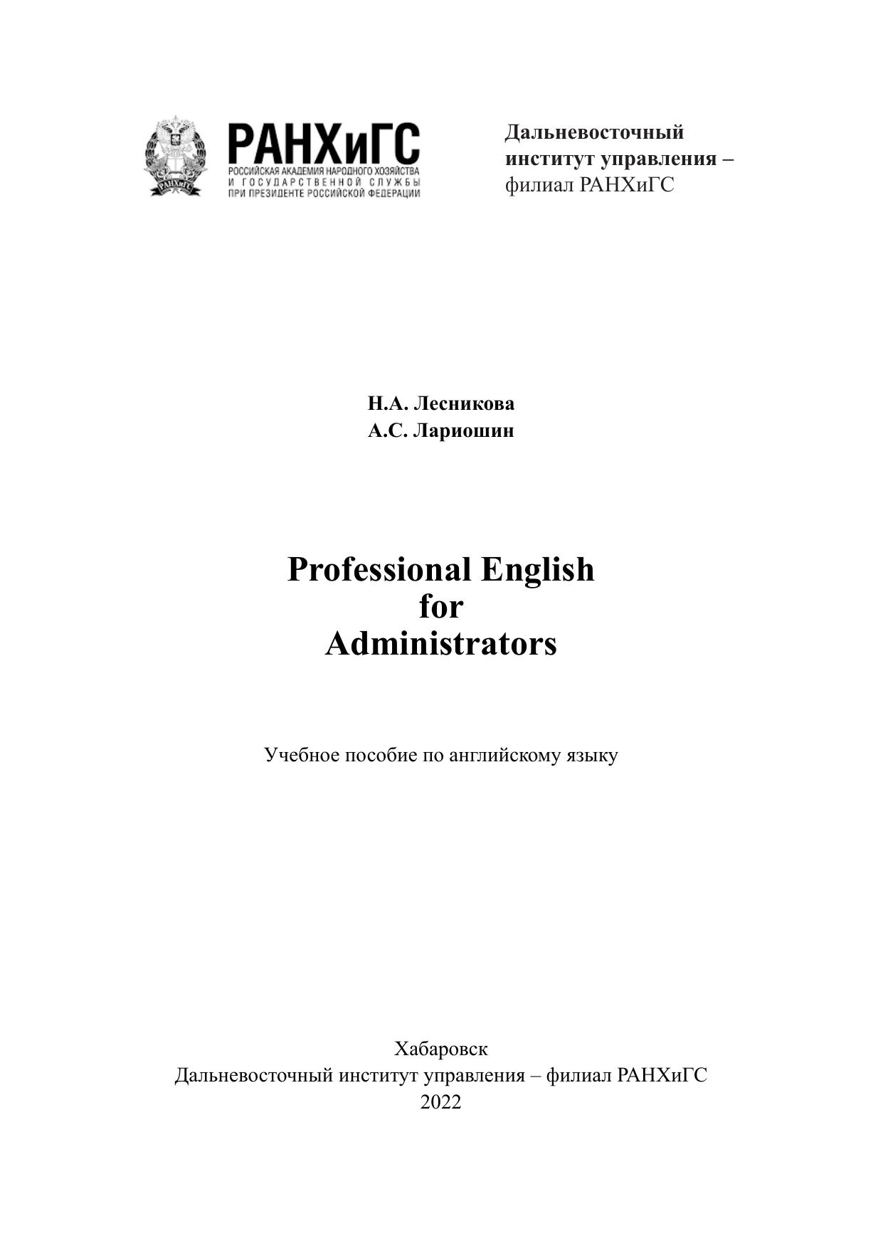 Professional English for Administrators по английскому языку