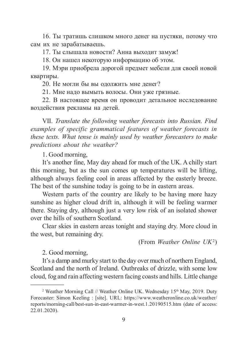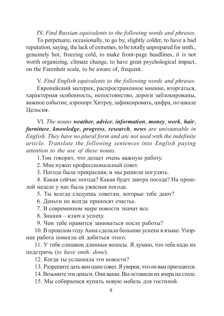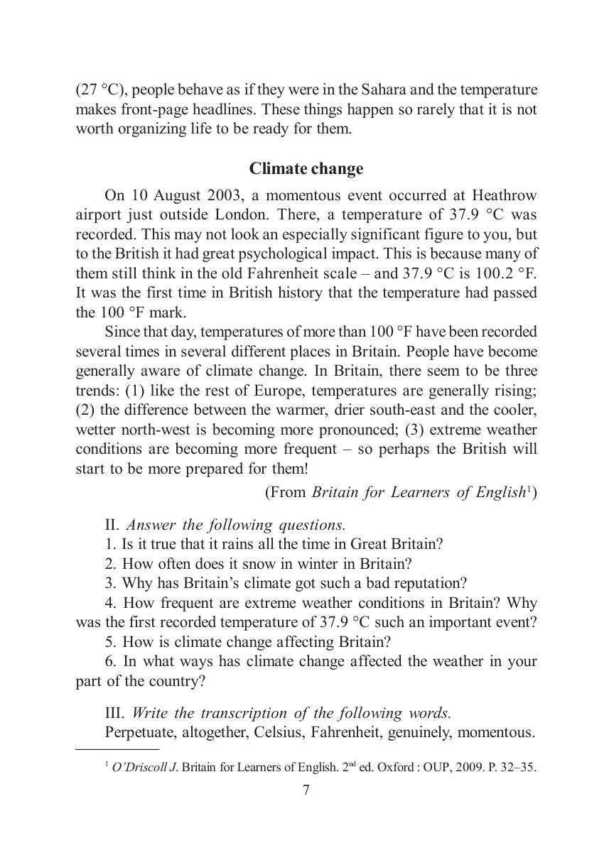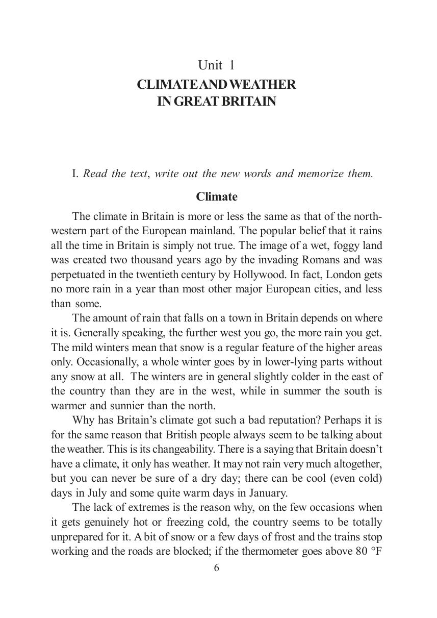 Практикум содержит оригинальные тексты на английском языке и упражнения, направленные на пополнение и актуализацию словарного запаса по темам «Климат и погодные условия в Великобритании и России», «Отдых и развлечения», «Основные осенние и зимние праздники в англоязычных странах», «Среднее образование в Великобритании», «Роберт Бернс: биография и творческий путь».