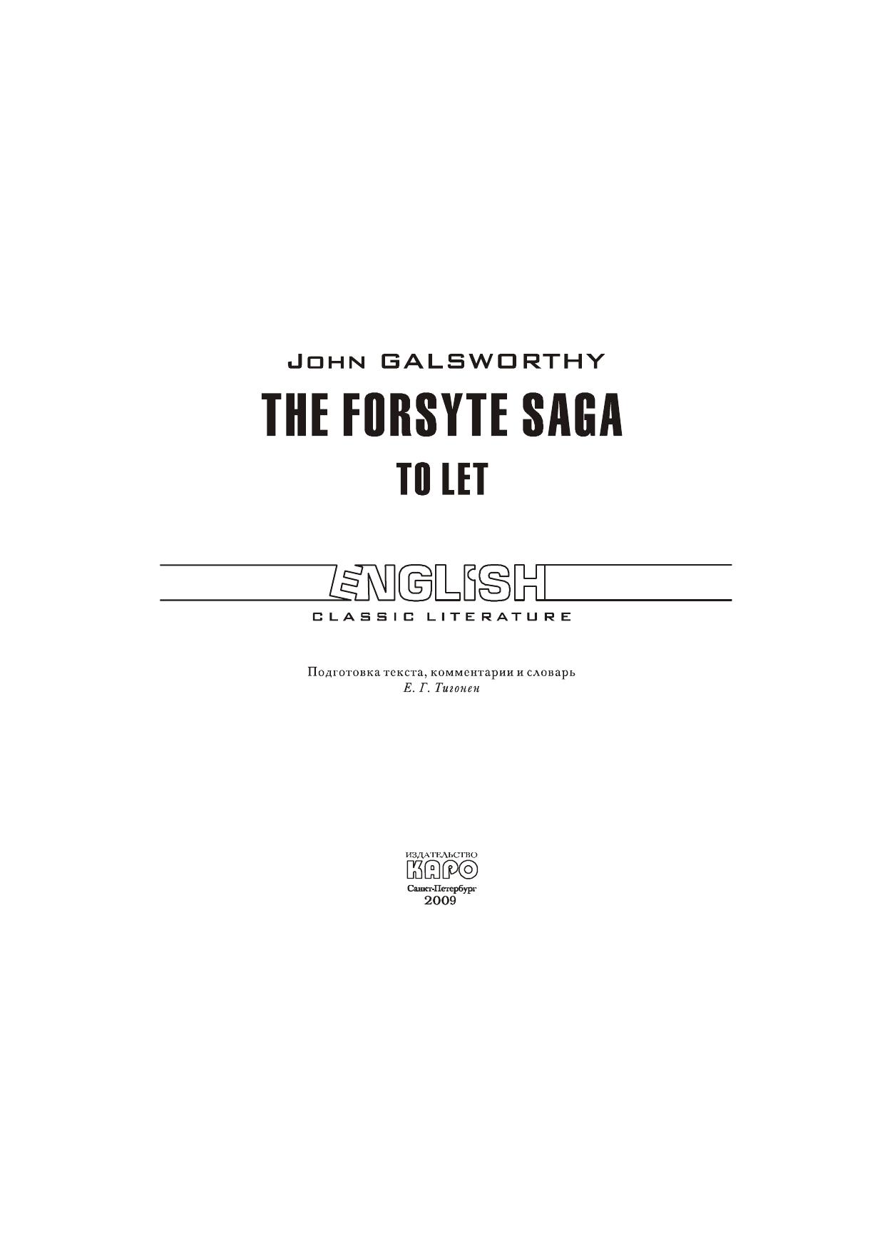 Предлагаем вниманию читателей заключительную часть трилогии Дж. Голсуорси «Сага о Форсайтах» — «Сдается внаем». В центре повествования — судьбы Флер и Джона, представителей молодого поколения семьи Форсайтов.Неадаптированный текст романа снабжен комментариями и словарем. Книга адресована студентам языковых вузов и всем любителям английской литературы.