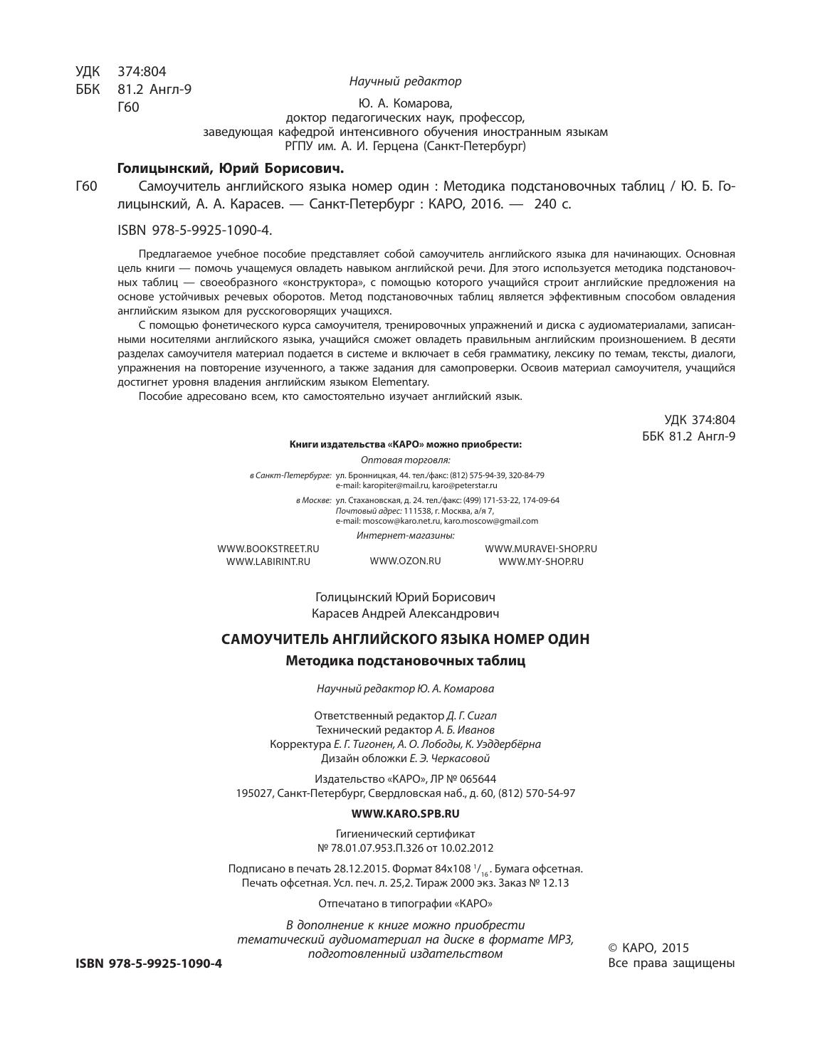 Предлагаемое учебное пособие представляет собой самоучитель английского языка для начинающих. Основная цель книги — помочь учащемуся овладеть навыком английской речи. Для этого используется методика подстановочных таблиц — своеобразного «конструктора», с помощью которого учащийся строит английские предложения на основе устойчивых речевых оборотов. Метод подстановочных таблиц является эффективным способом овладения английским языком для русскоговорящих учащихся.