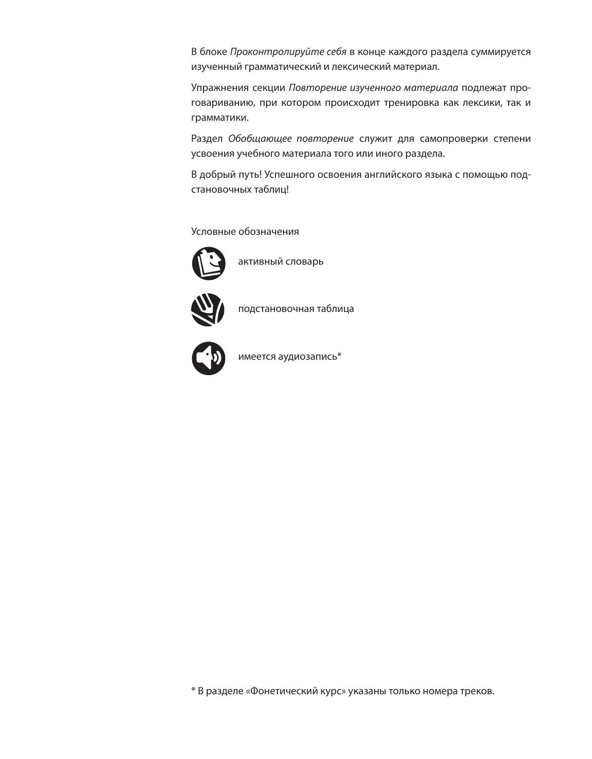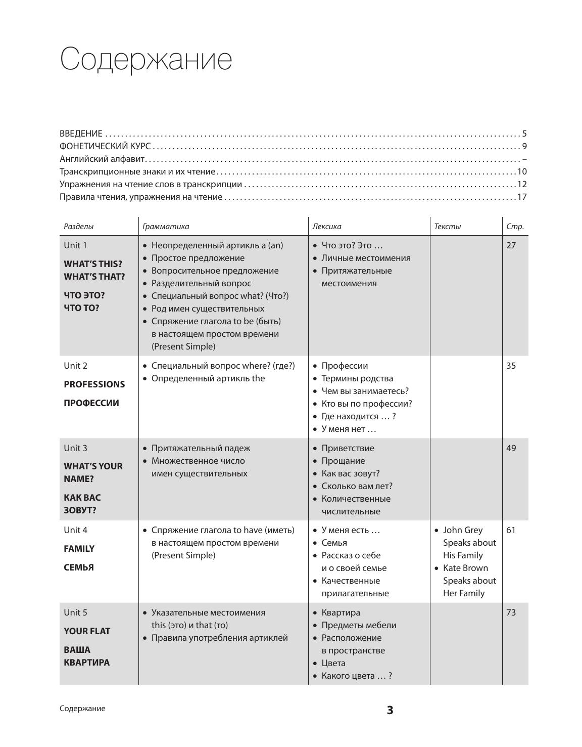 С помощью фонетического курса самоучителя, тренировочных упражнений и диска с аудиоматериалами, записанными носителями английского языка, учащийся сможет овладеть правильным английским произношением. В десяти разделах самоучителя материал подается в системе и включает в себя грамматику, лексику по темам, тексты, диалоги, упражнения на повторение изученного, а также задания для самопроверки. Освоив материал самоучителя, учащийся достигнет уровня владения английским языком Elementary.