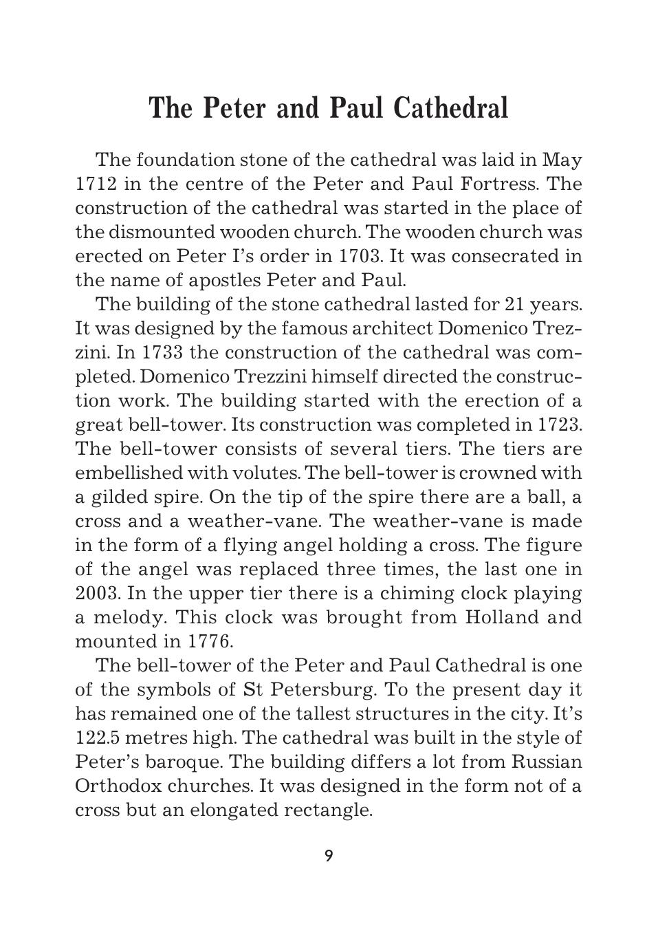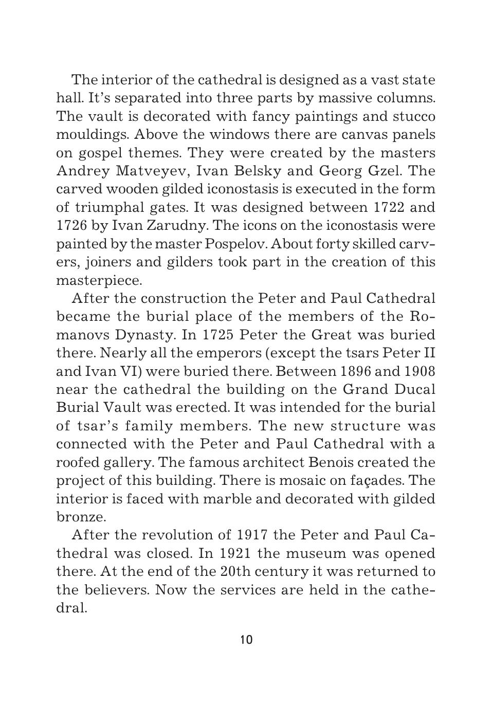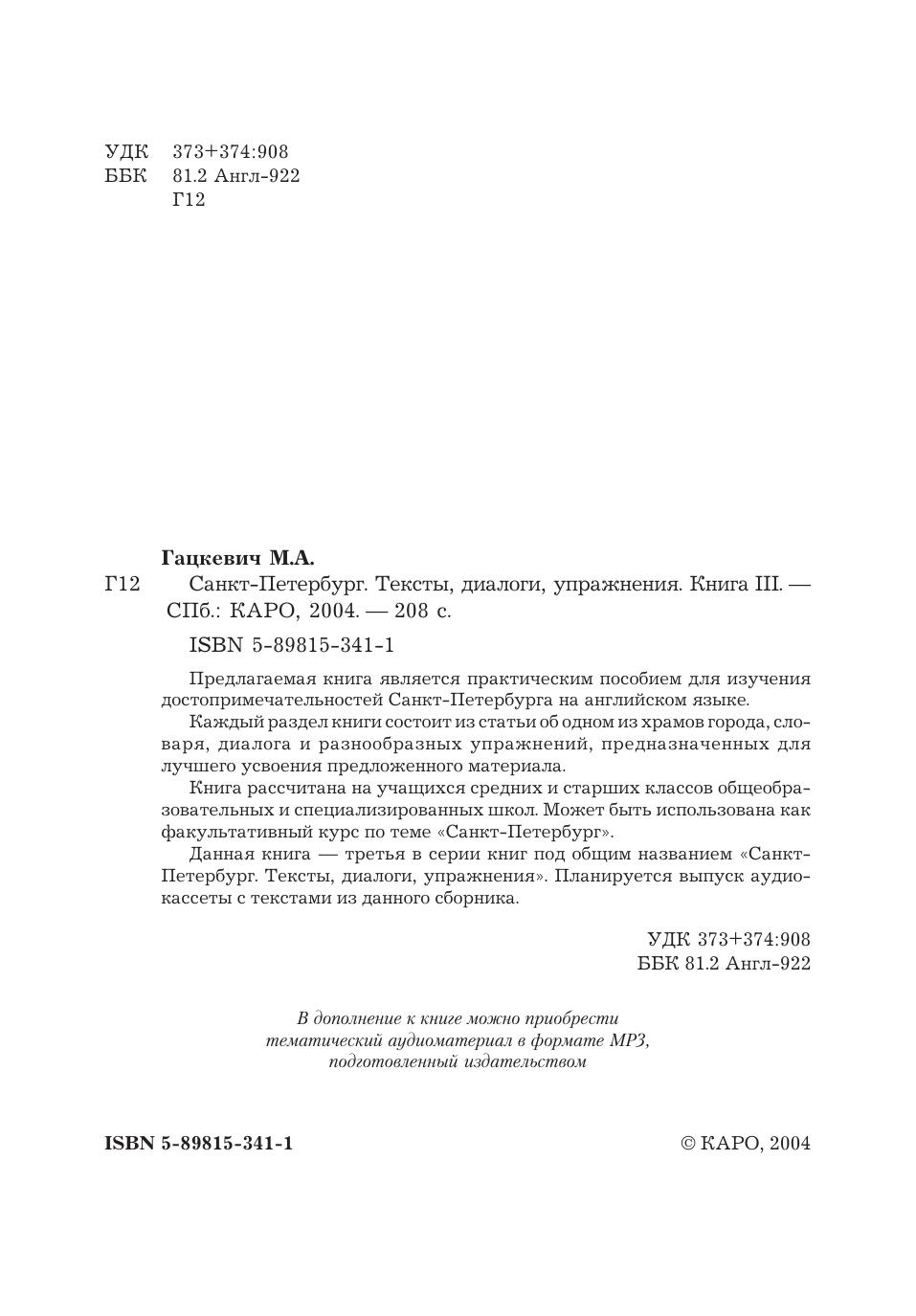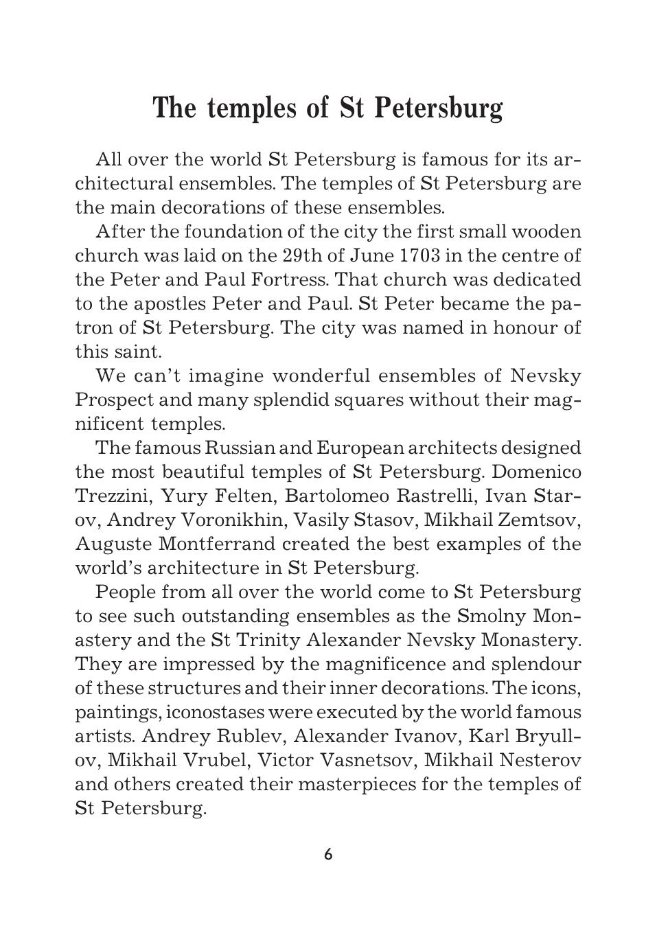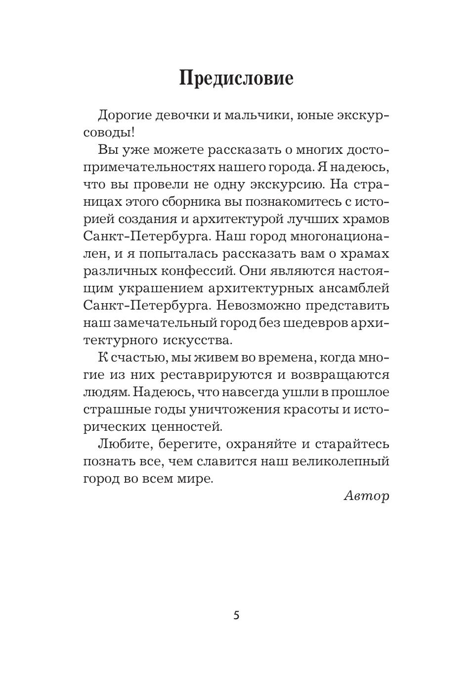 Предлагаемая книга является практическим пособием для изучения достопримечательностей Санкт-Петербурга на английском языке. Каждый раздел книги состоит из статьи об одном из храмов города, слваря, диалога и разнообразных упражнений, предназначенных для лучшего усвоения предложенного материала. Книга рассчитана на учащихся средних и старших классов общеобразовательных и специализированных школ. Может быть использована как факультативный курс по теме «Санкт-Петербург». Данная книга — третья в серии книг под общим названием «Санкт-Петербург. Тексты, диалоги, упражнения». Планируется выпуск аудио-кассеты с текстами из данного сборника.