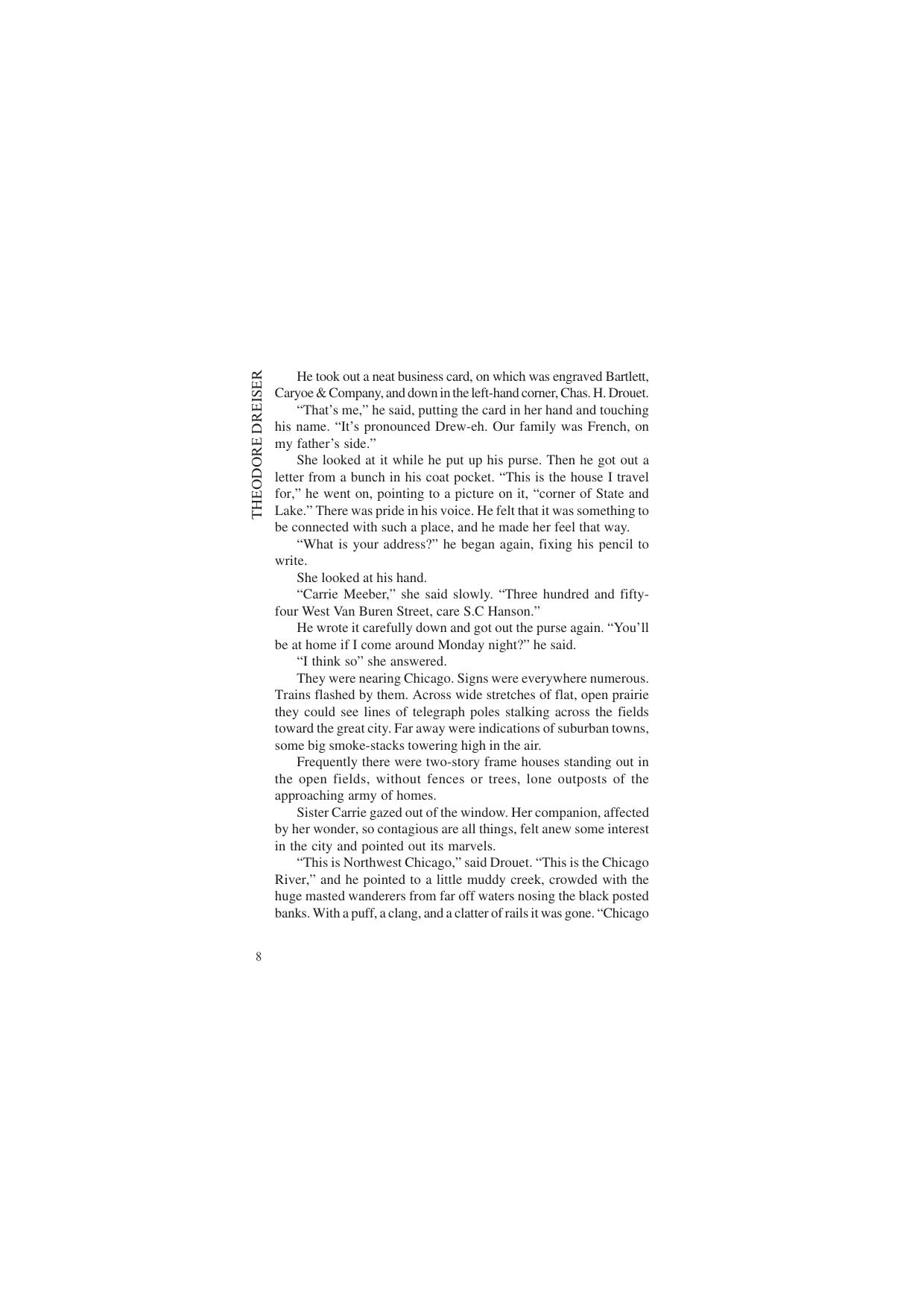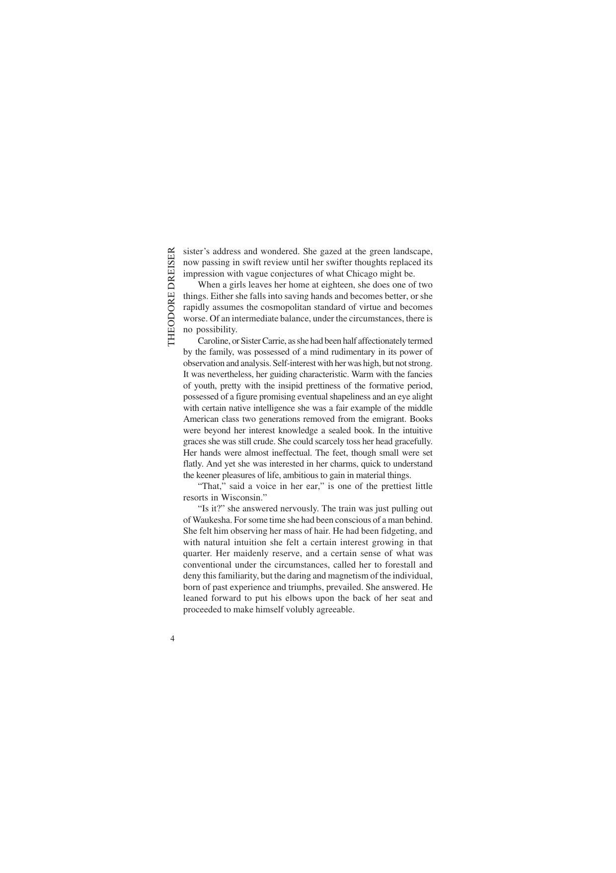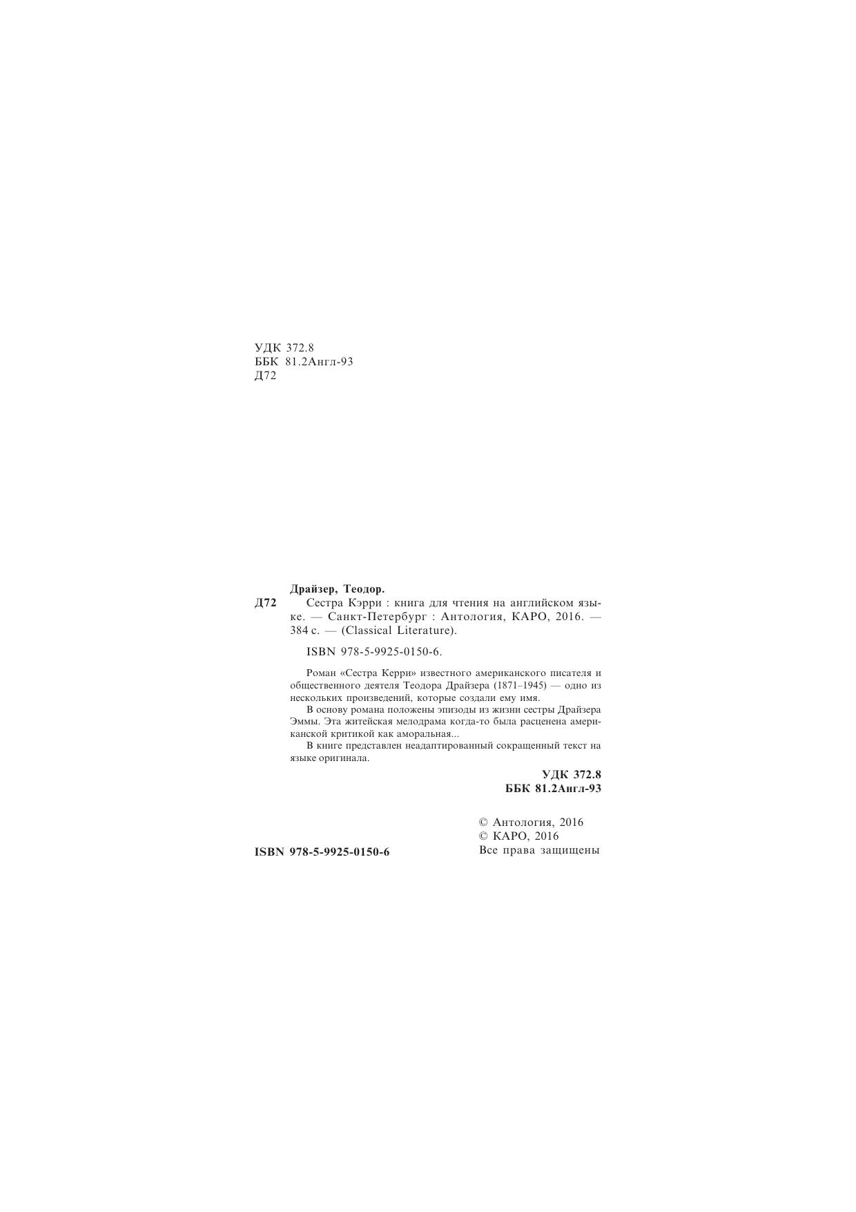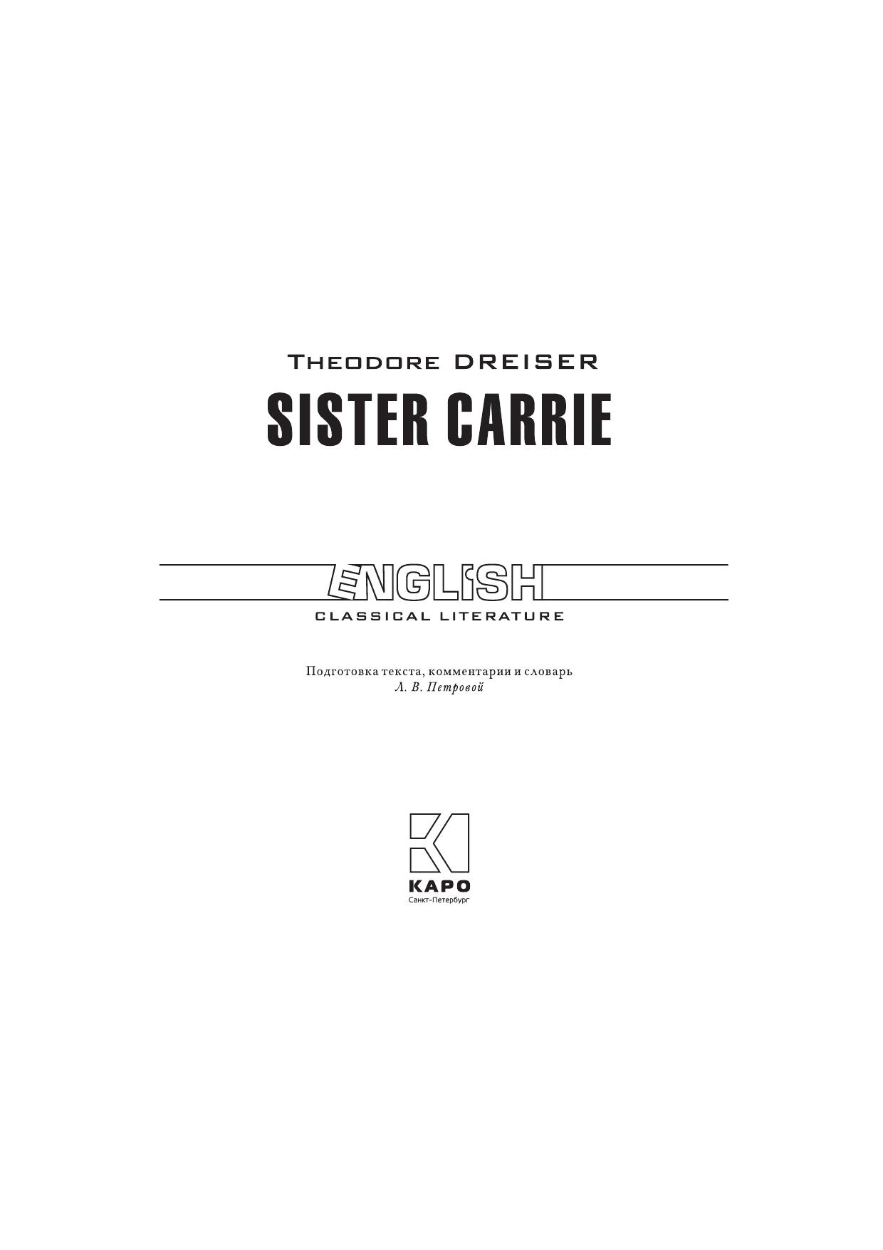 Роман «Сестра Кэрри» известного американского писателя и общественного деятеля Теодора Драйзера (1871-1945) — одно из нескольких произведений, которые создали ему имя. В основу романа положены эпизоды из жизни сестры Драйзера Эммы. Эта житейская мелодрама когда-то была расценена американской критикой как аморальная... В книге представлен неадаптированный сокращенный текст на языке оригинала.
