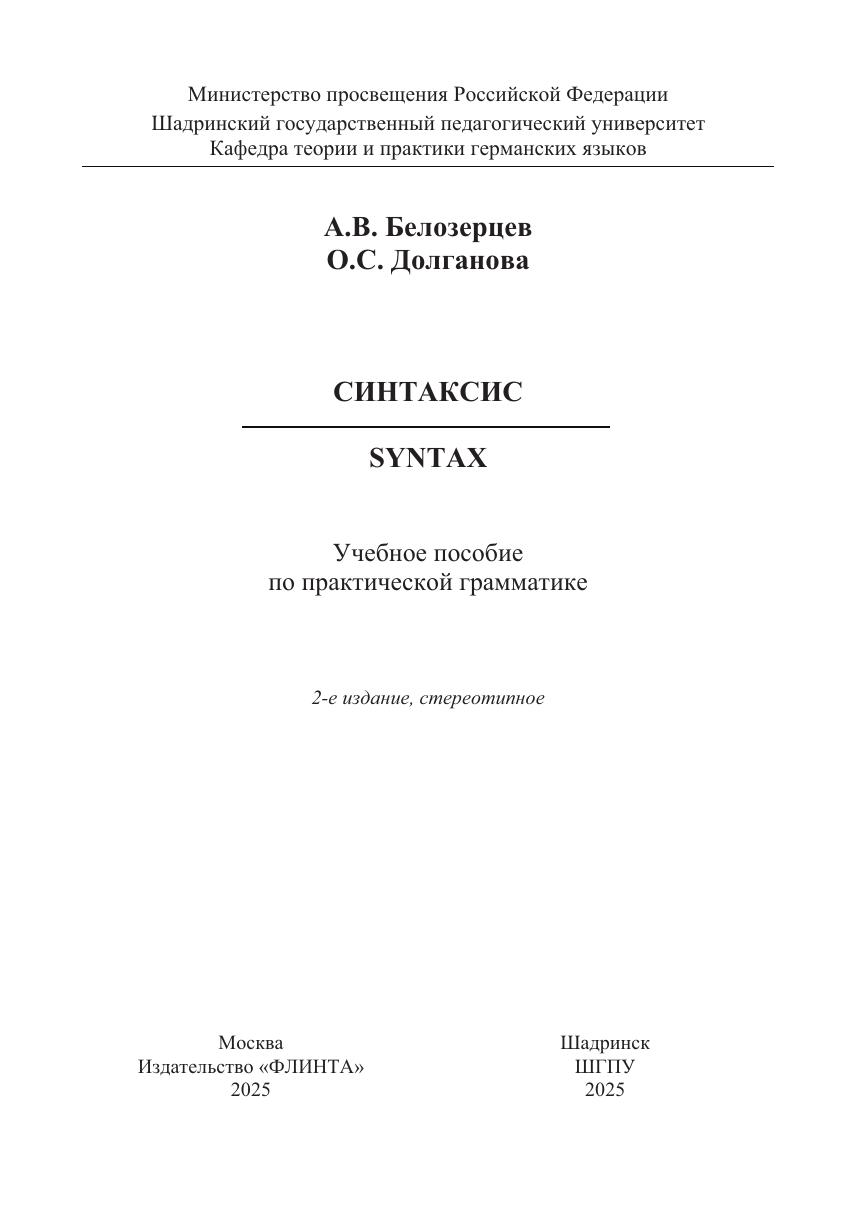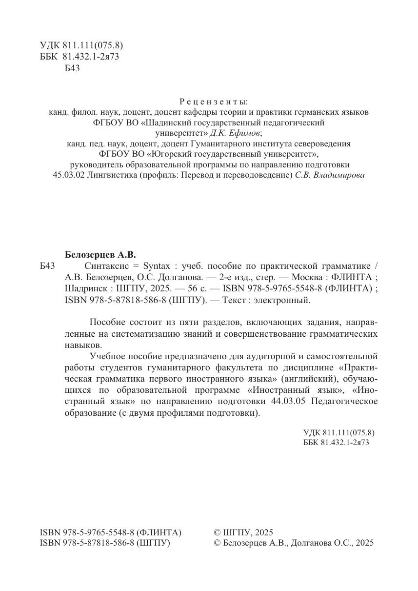 Учебное пособие предназначено для аудиторной и самостоятельной работы студентов гуманитарного факультета по дисциплине «Практи ческая грамматика первого иностранного языка» (английский), обучающихся по образовательной программе «Иностранный язык», «Иностранный язык» по направлению подготовки 44.03.05 Педагогическое образование (с двумя профилями подготовки).