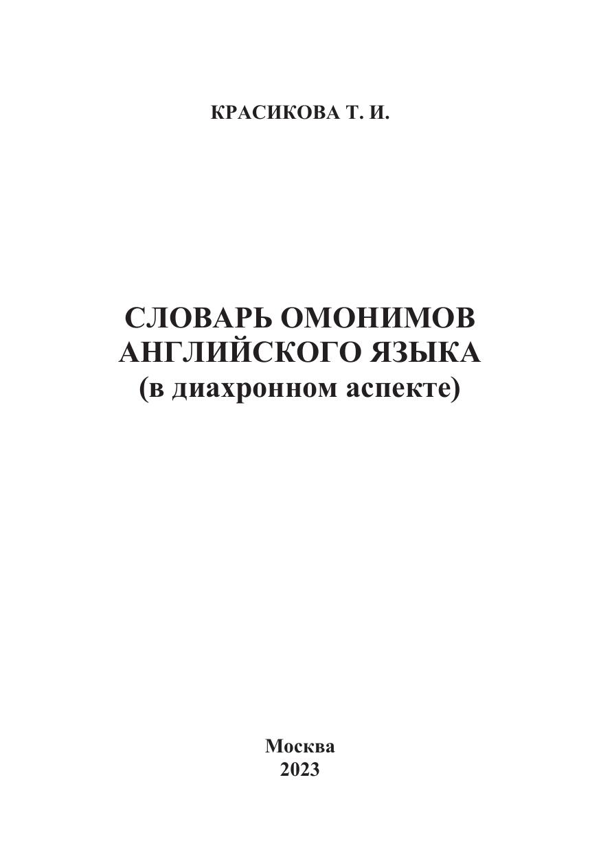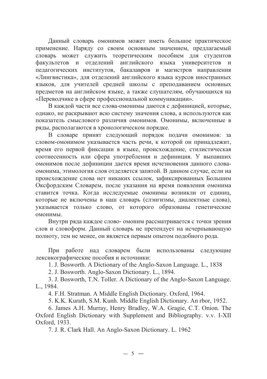 Словарь омонимов английского языка (в диахронном аспекте)