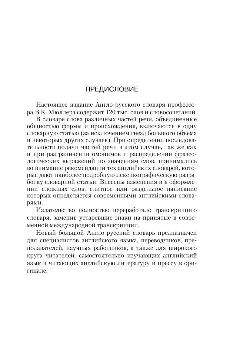 Настоящее издание англо-русского словаря профессора В.К. Мюллера содержит около 120 тыс. слов и словосочетаний. В новой редакции слова различных частей речи, объединенные общностью формы и происхождения, включены в одну словарную статью, внесены изменения в оформлении сложных слов, слитное или раздельное написание которых определяется современными английскими словарями.