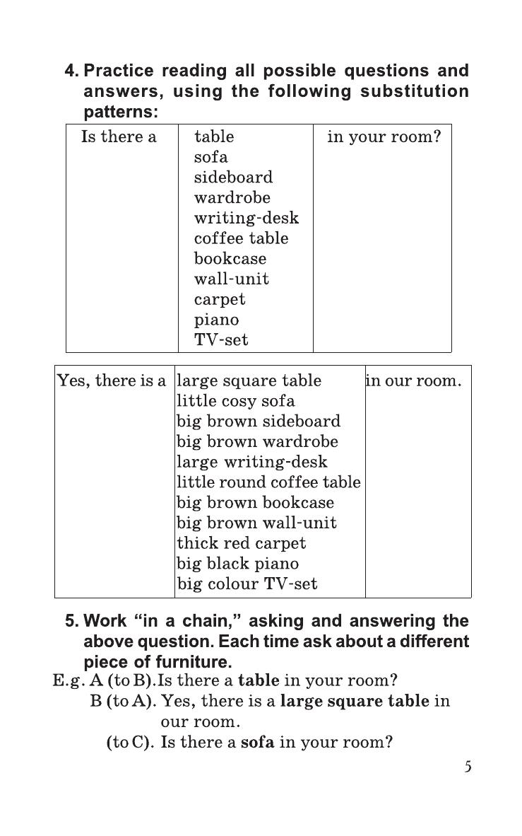 Пособие содержит несколько наиболее общих тем: семья, погода, театр, образование, путешествия и т.д. Каждая тема сопровождается большим количеством заданий и упражнений, направленных на формирование и закрепление навыков составления рассказа с использованием прямой и косвенной речи, умения задавать вопросы и отвечать на них. Применяется в качестве учебного пособия учащимися V-IX классов базовых школ и школ с углубленным изучением английского языка