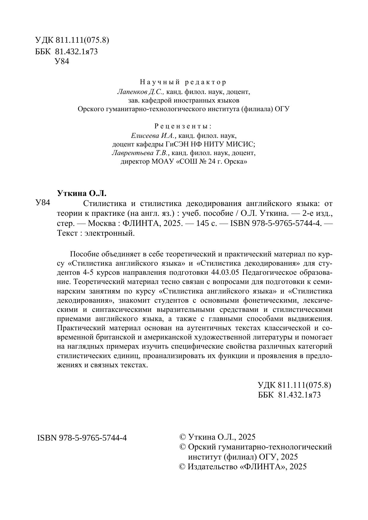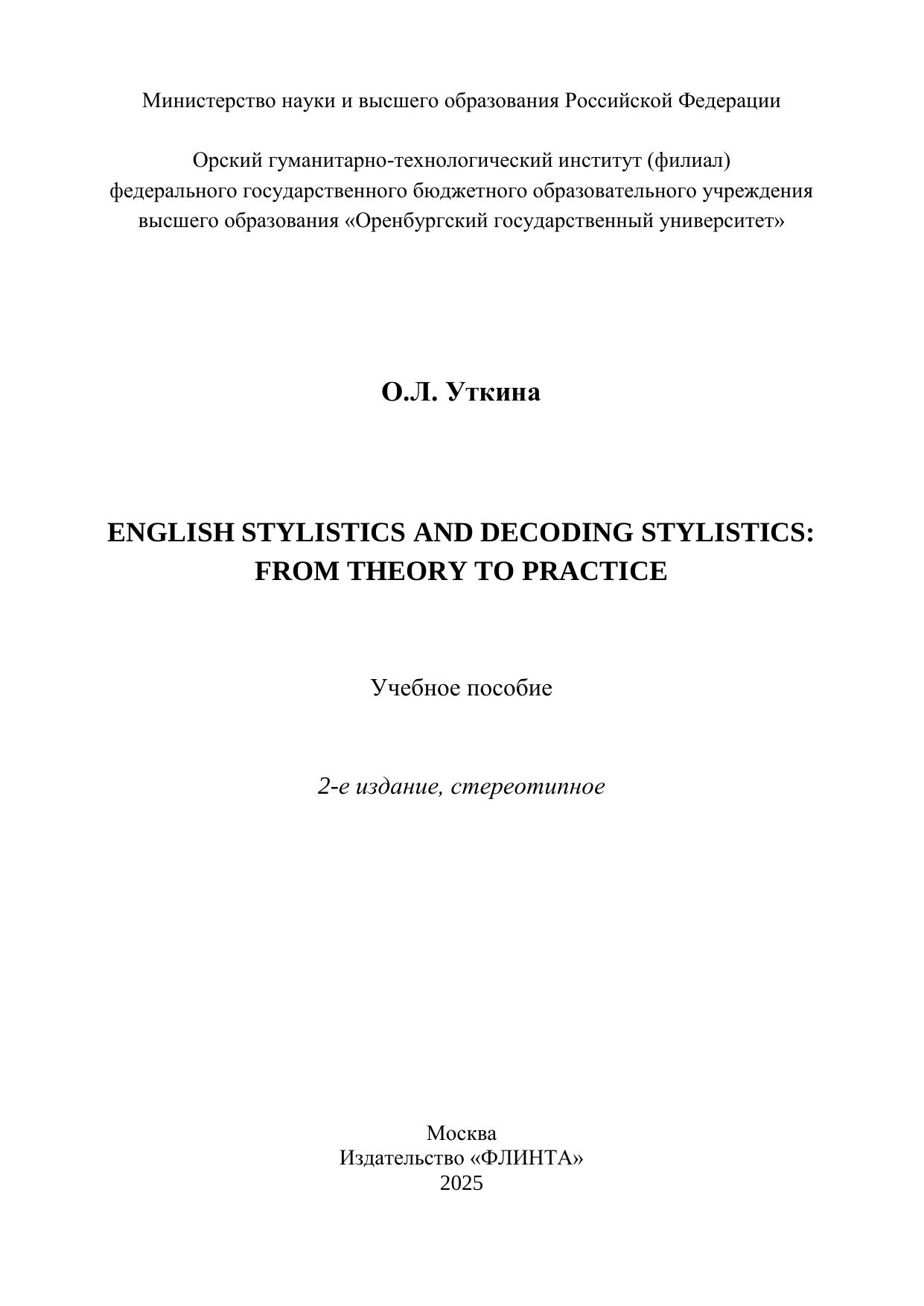 Стилистика и стилистика декодирования английского языка: от теории к практике = ENGLISH STYLISTICS AND DECODING STRYLISTICS: FROM THEORY TO PRACTICE